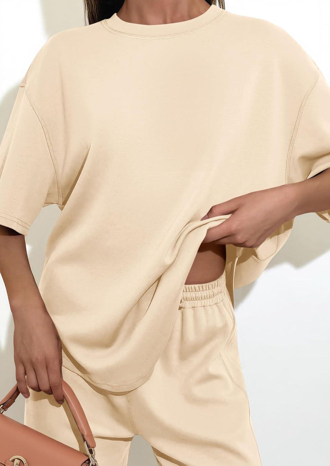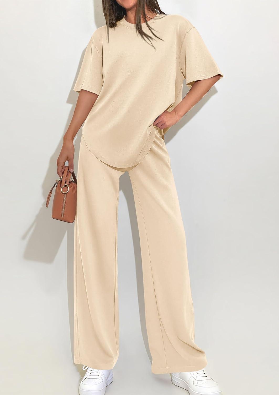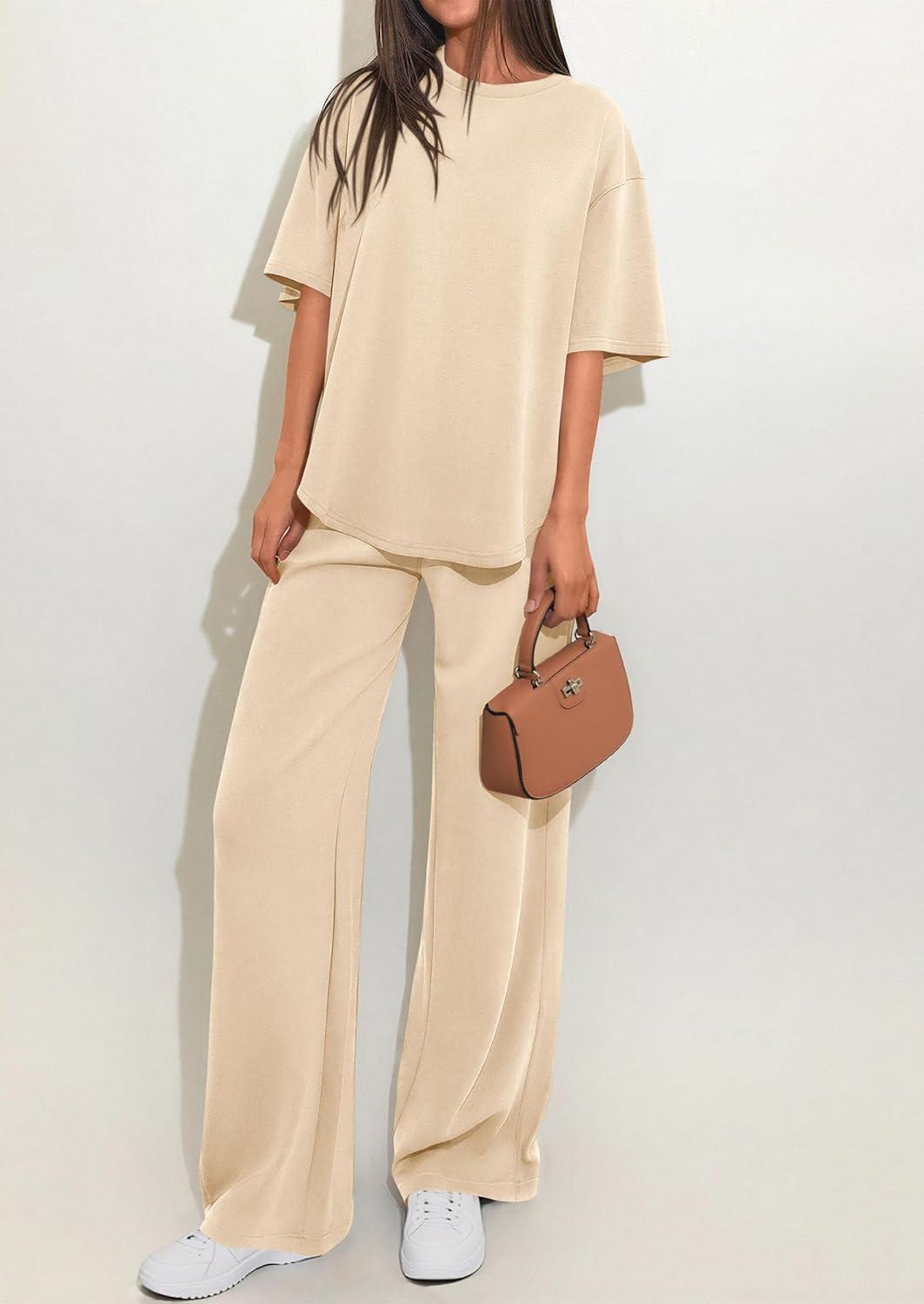 PRETTYGARDEN 2 Piece Lounge Sets for Women Summer 2026 Short Sleeve Matching Airport Travel Outfits Casual Spring Clothes(Beige)
