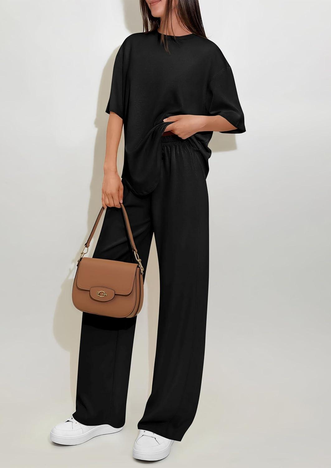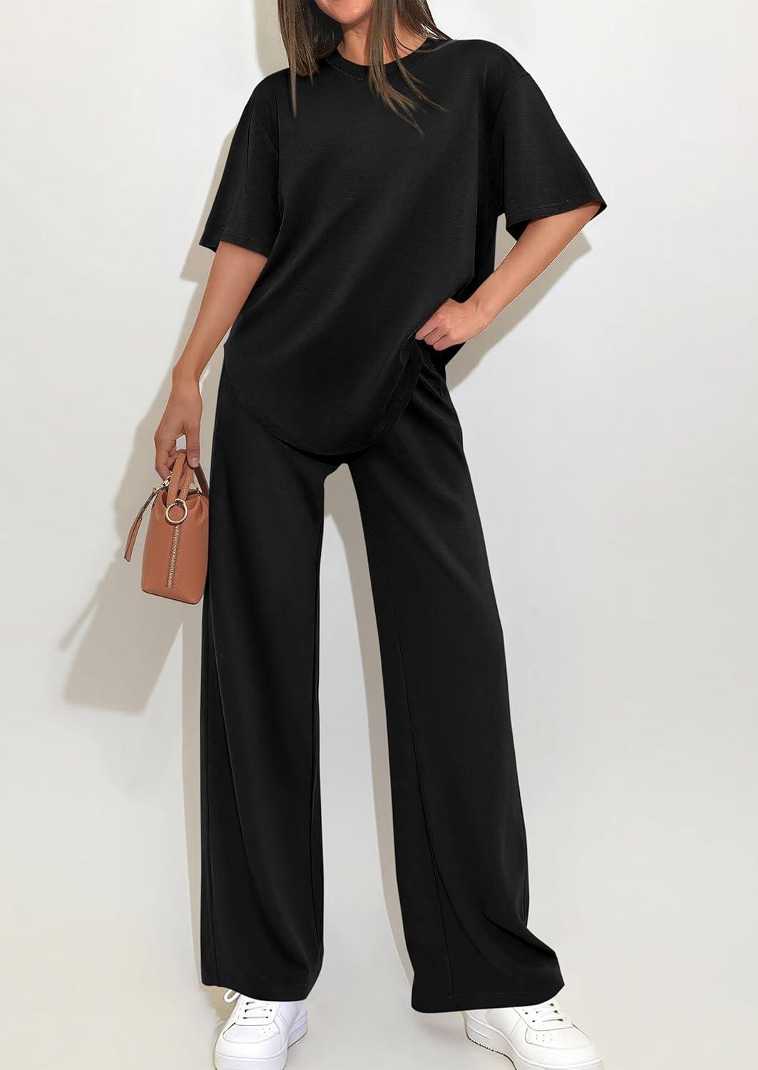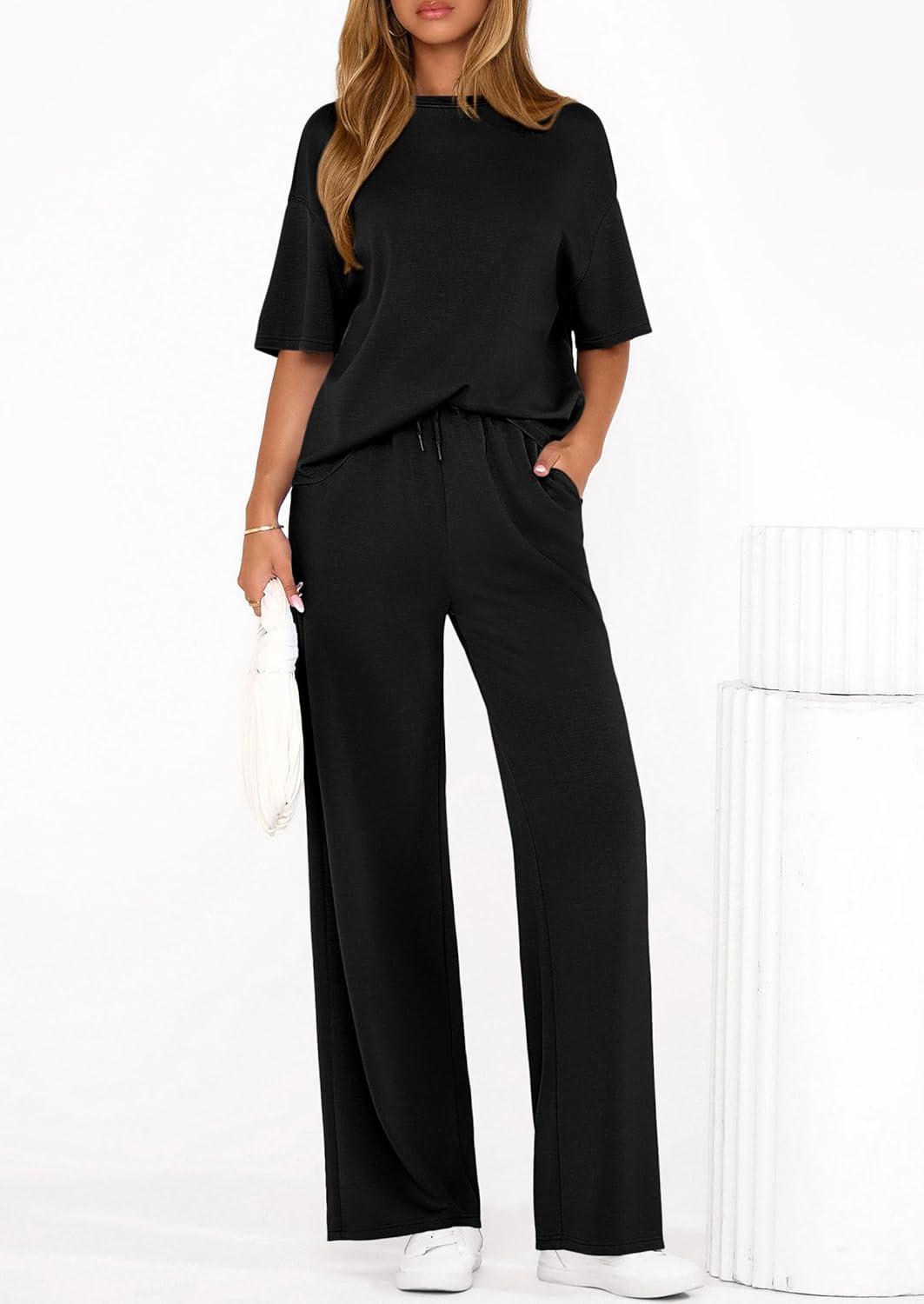 PRETTYGARDEN 2 Piece Lounge Sets for Women Summer 2026 Short Sleeve Matching Airport Travel Outfits Casual Spring Clothes(Black)