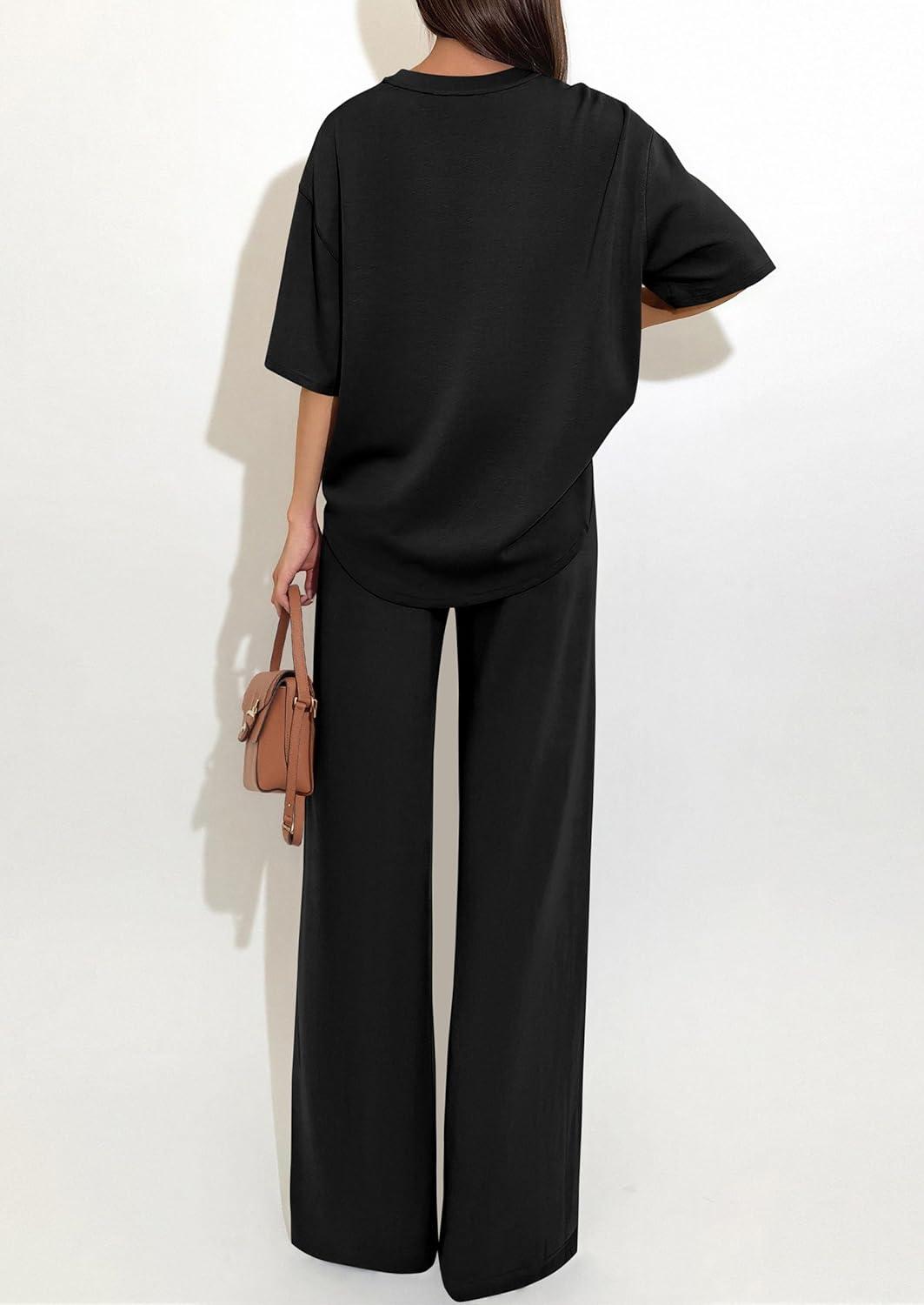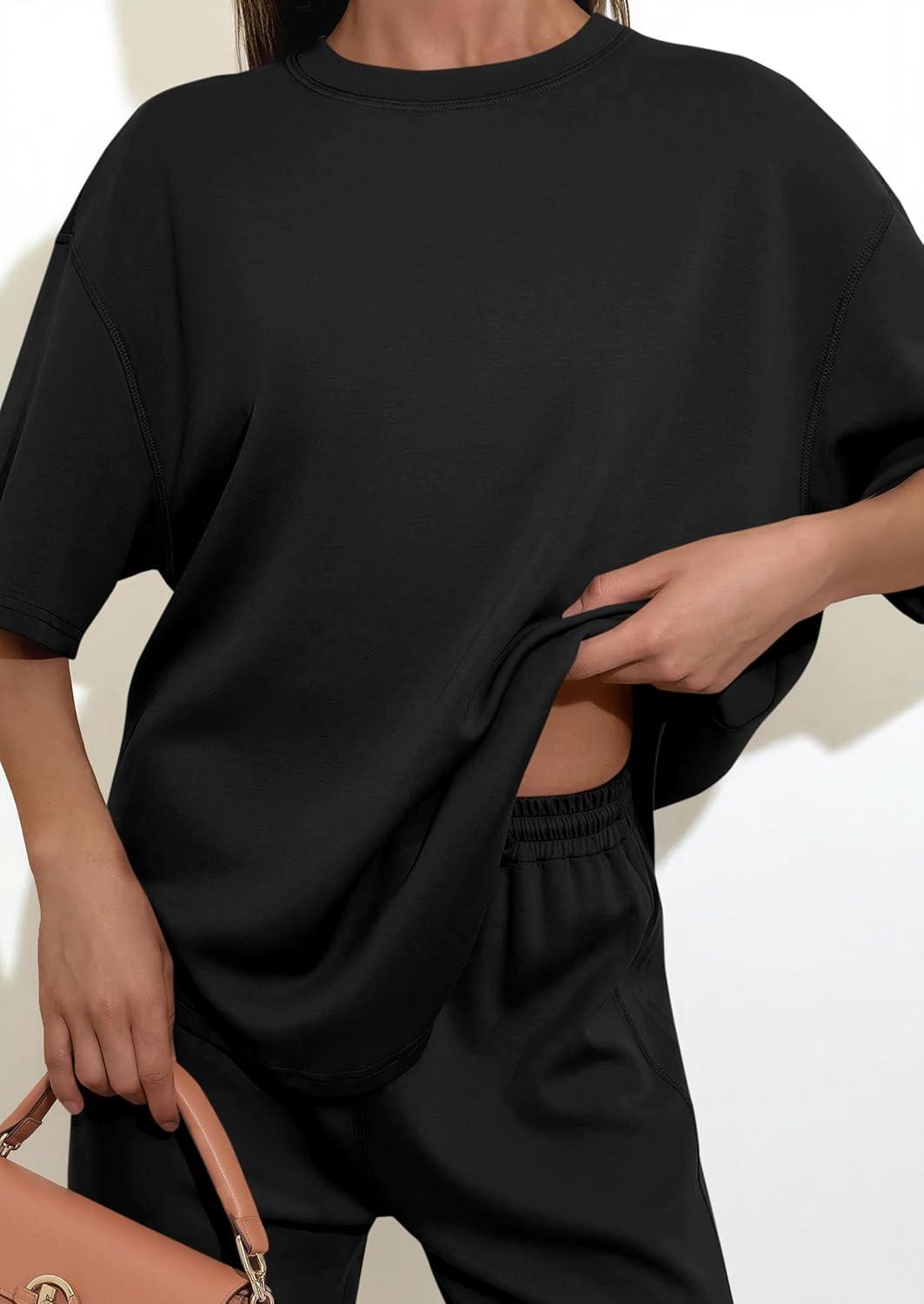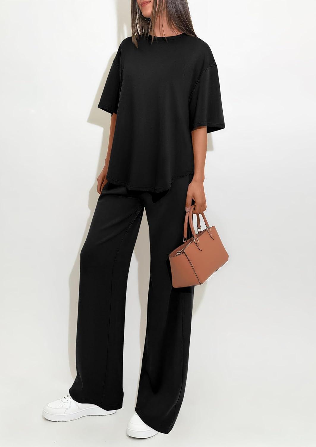 PRETTYGARDEN 2 Piece Lounge Sets for Women Summer 2026 Short Sleeve Matching Airport Travel Outfits Casual Spring Clothes(Black)