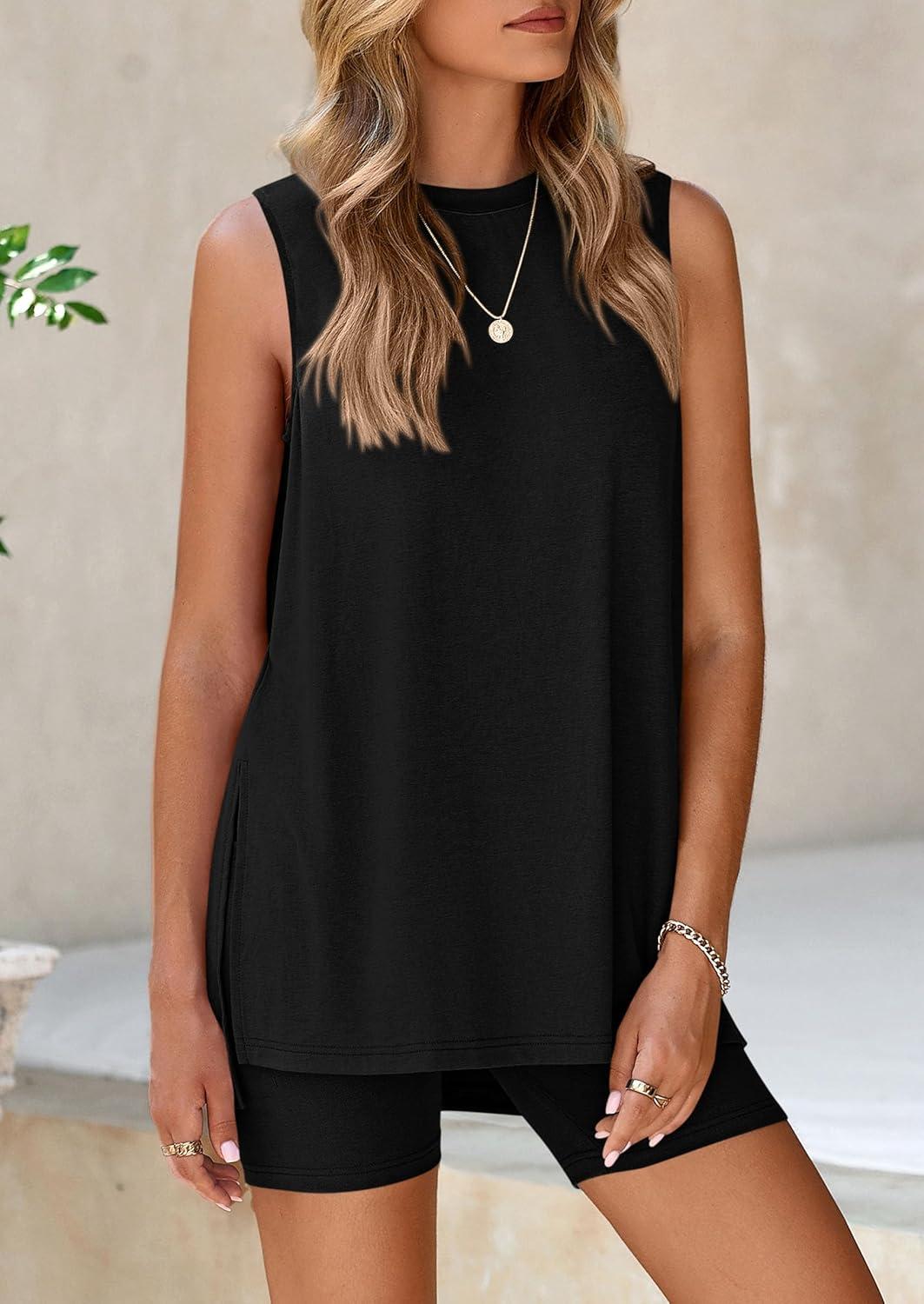 PRETTYGARDEN 2 Piece Sets for Women 2025 Summer Matching Lounge Shorts Set Resort Airport Travel Loungewear Outfits Clothing(Black)