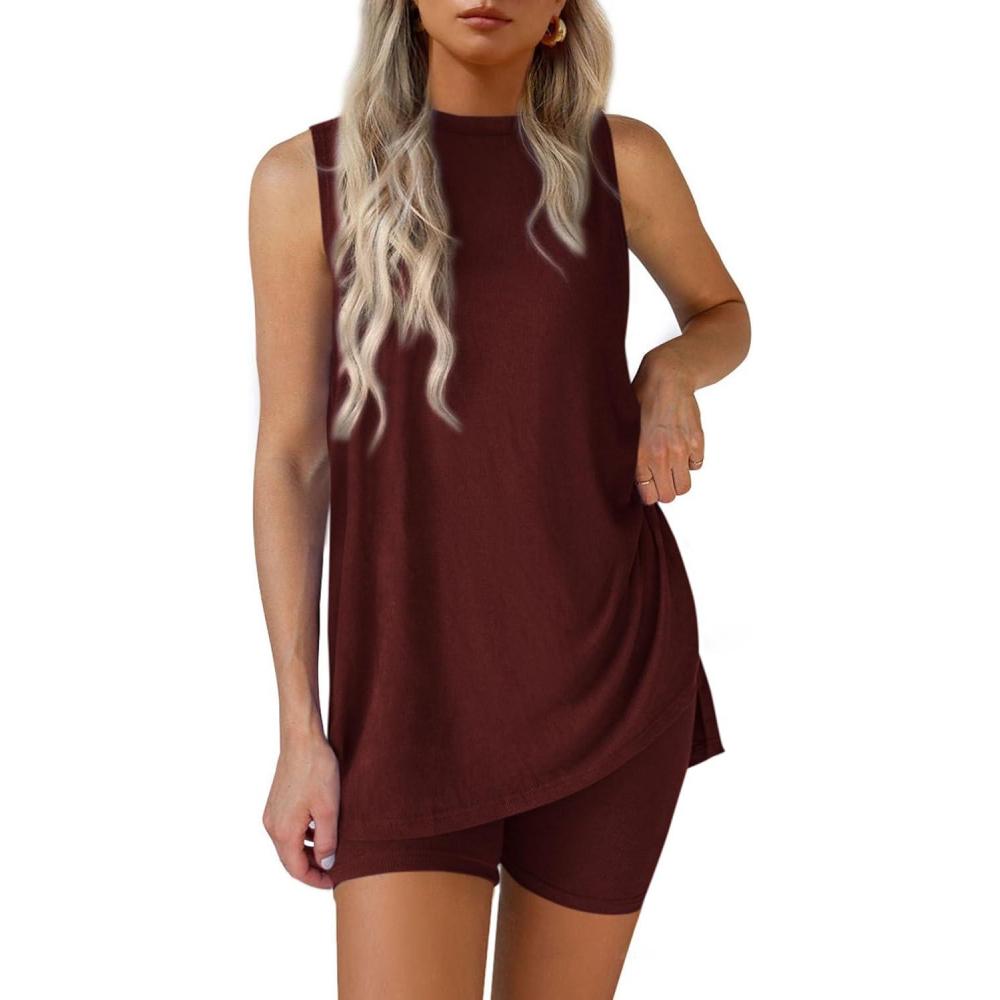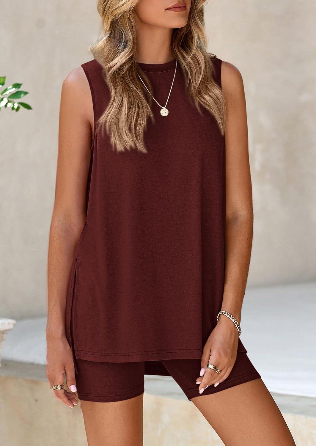 PRETTYGARDEN 2 Piece Sets for Women 2025 Summer Matching Lounge Shorts Set Resort Airport Travel Loungewear Outfits Clothing(Wine Red)