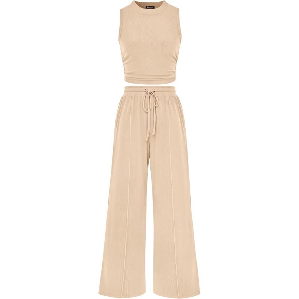 PRETTYGARDEN 2 Piece Sets for Women 2025 Summer Sleeveless Tank Ribbed Travel Beach Vacation Spring Lounge Wear Outfits(Apricot)