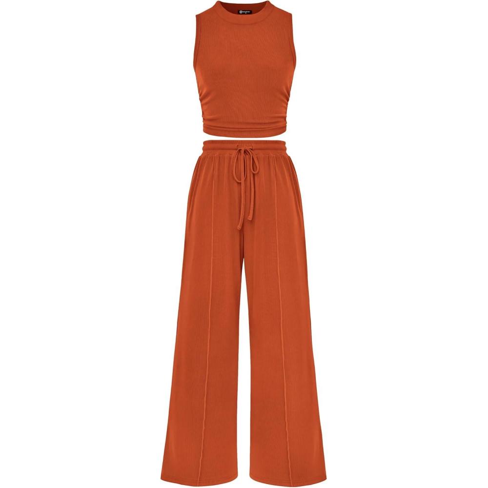 PRETTYGARDEN 2 Piece Sets for Women 2025 Summer Sleeveless Tank Ribbed Travel Beach Vacation Spring Lounge Wear Outfits(Brick Red)