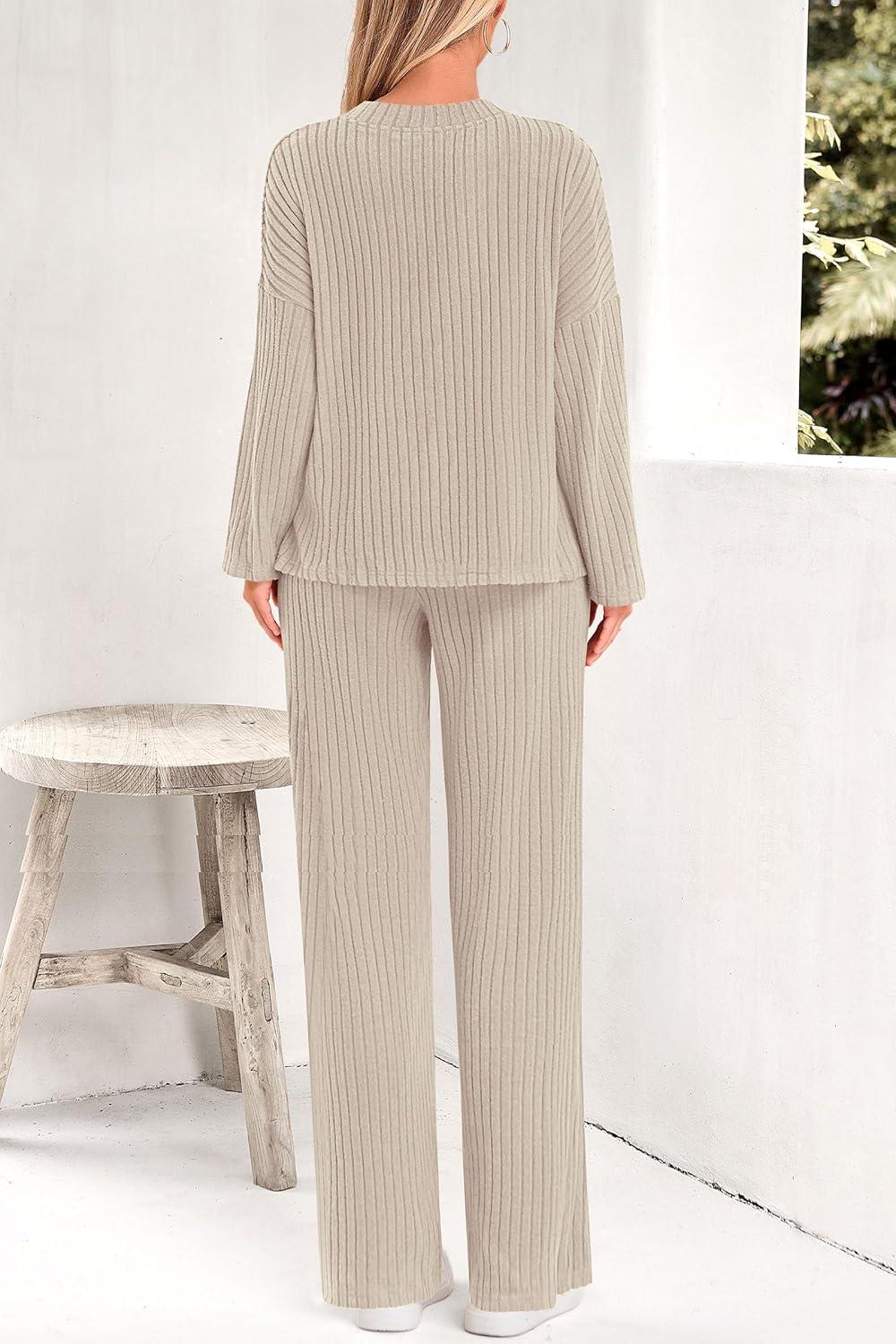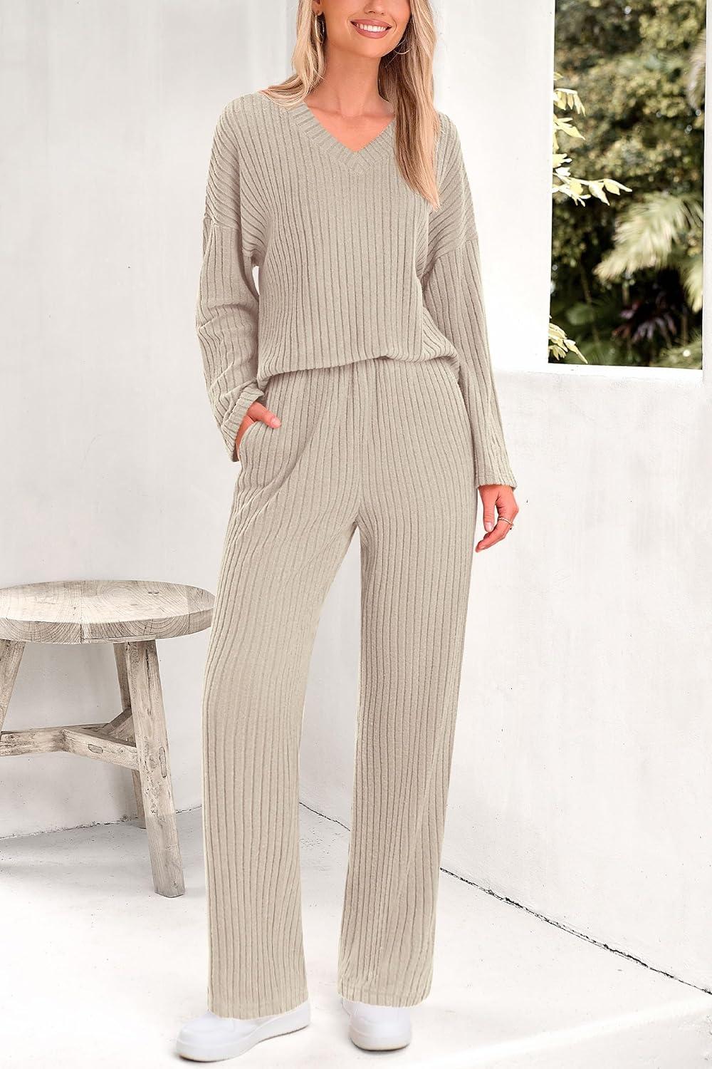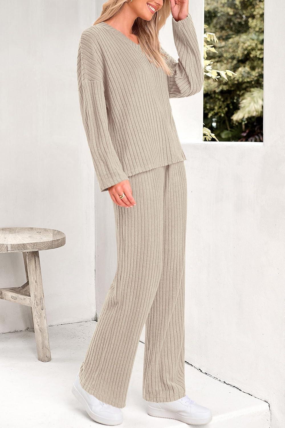 PRETTYGARDEN 2 Piece Sets for Women Fall 2025 Soft Comfy Lounge Long Sleeve Pajamas Set Knit Postpartum Pj Outfits Clothing(Apricot)