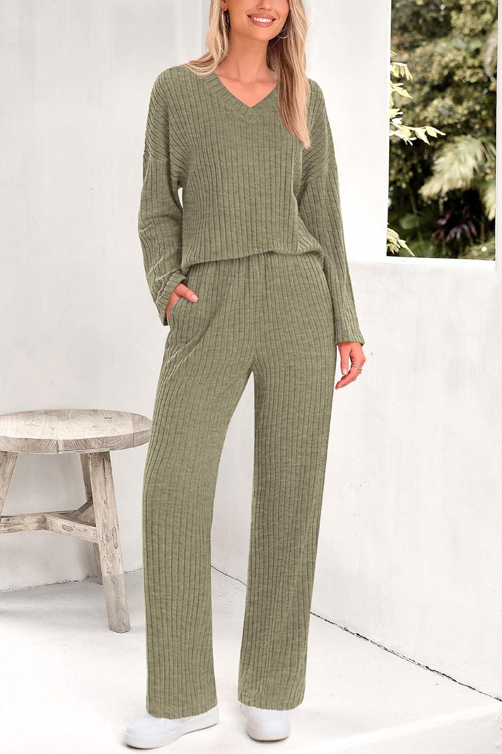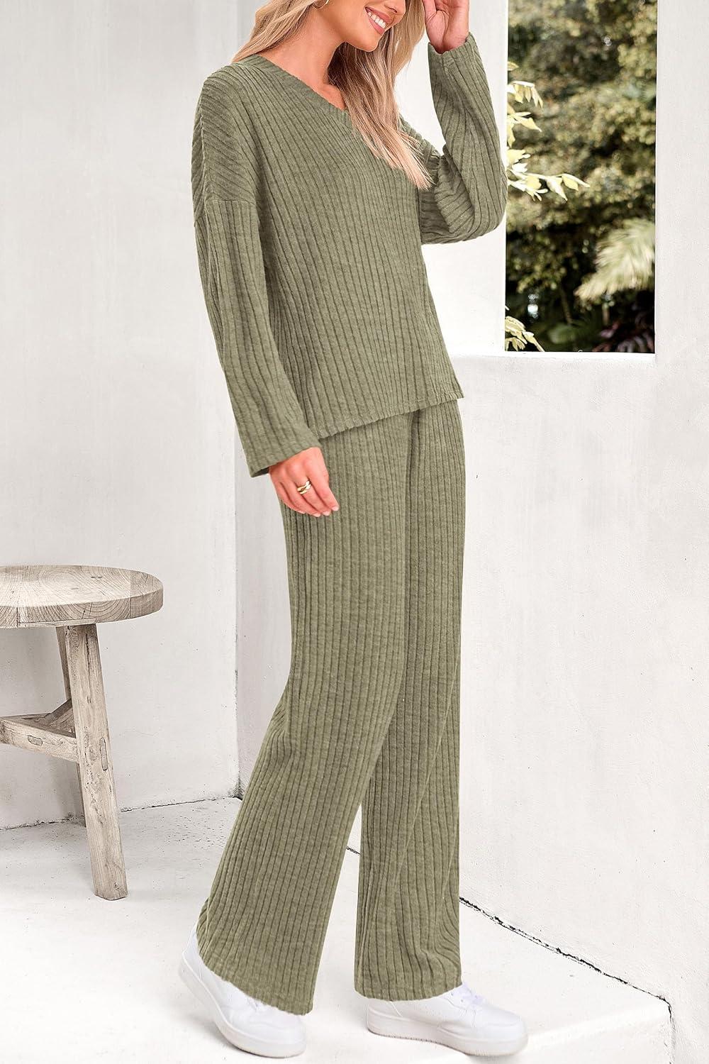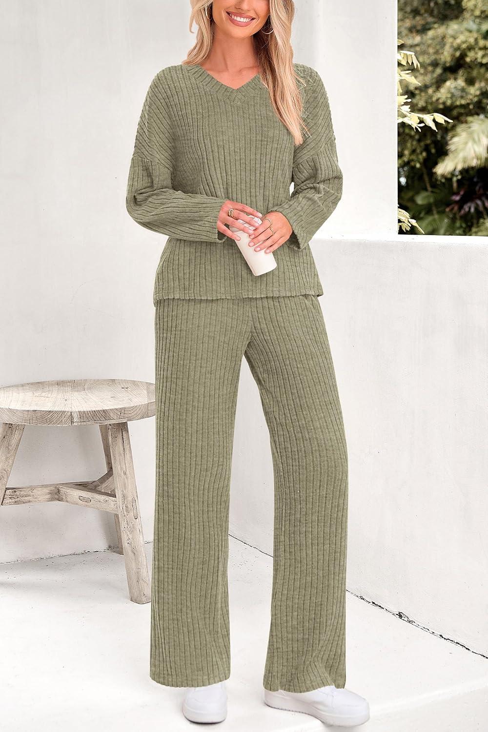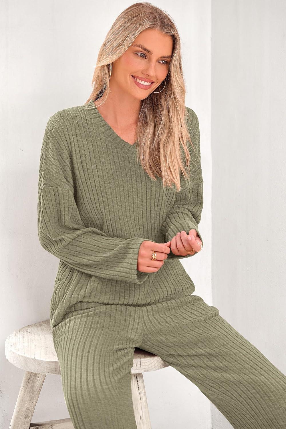 PRETTYGARDEN 2 Piece Sets for Women Fall 2025 Soft Comfy Lounge Long Sleeve Pajamas Set Knit Postpartum Pj Outfits Clothing(Army Green)