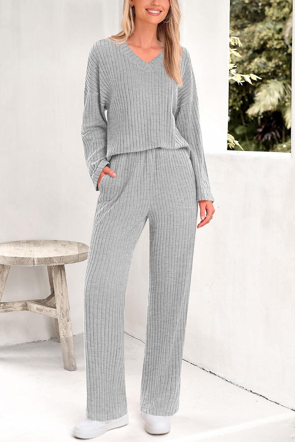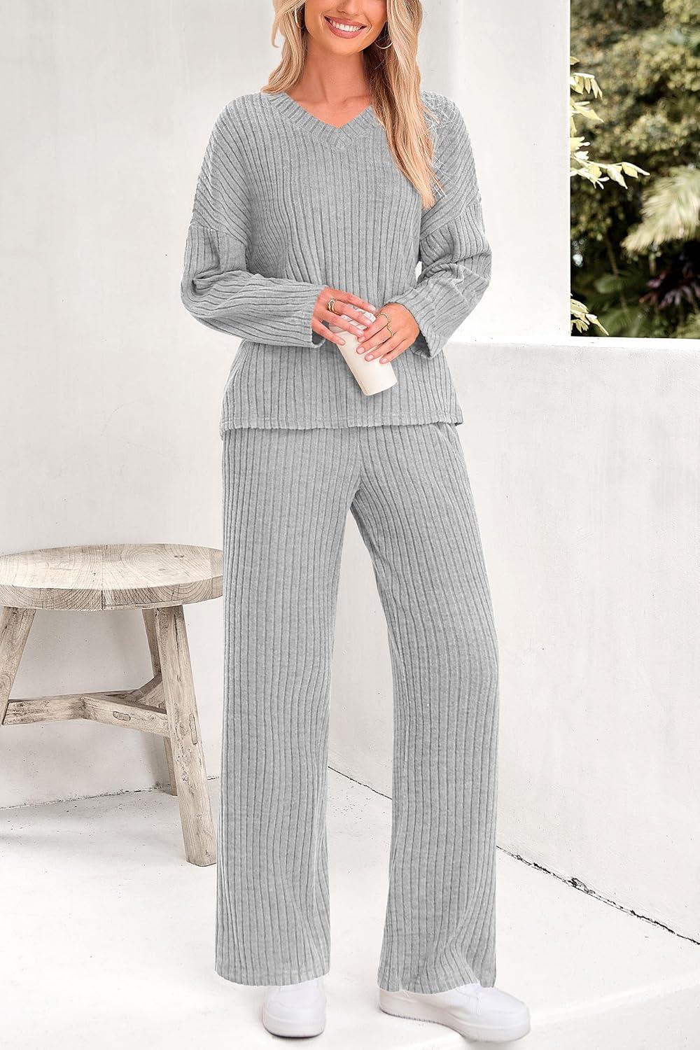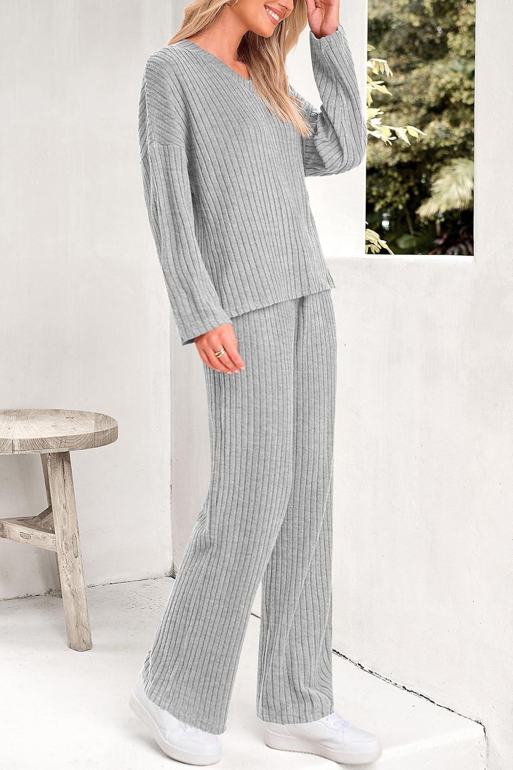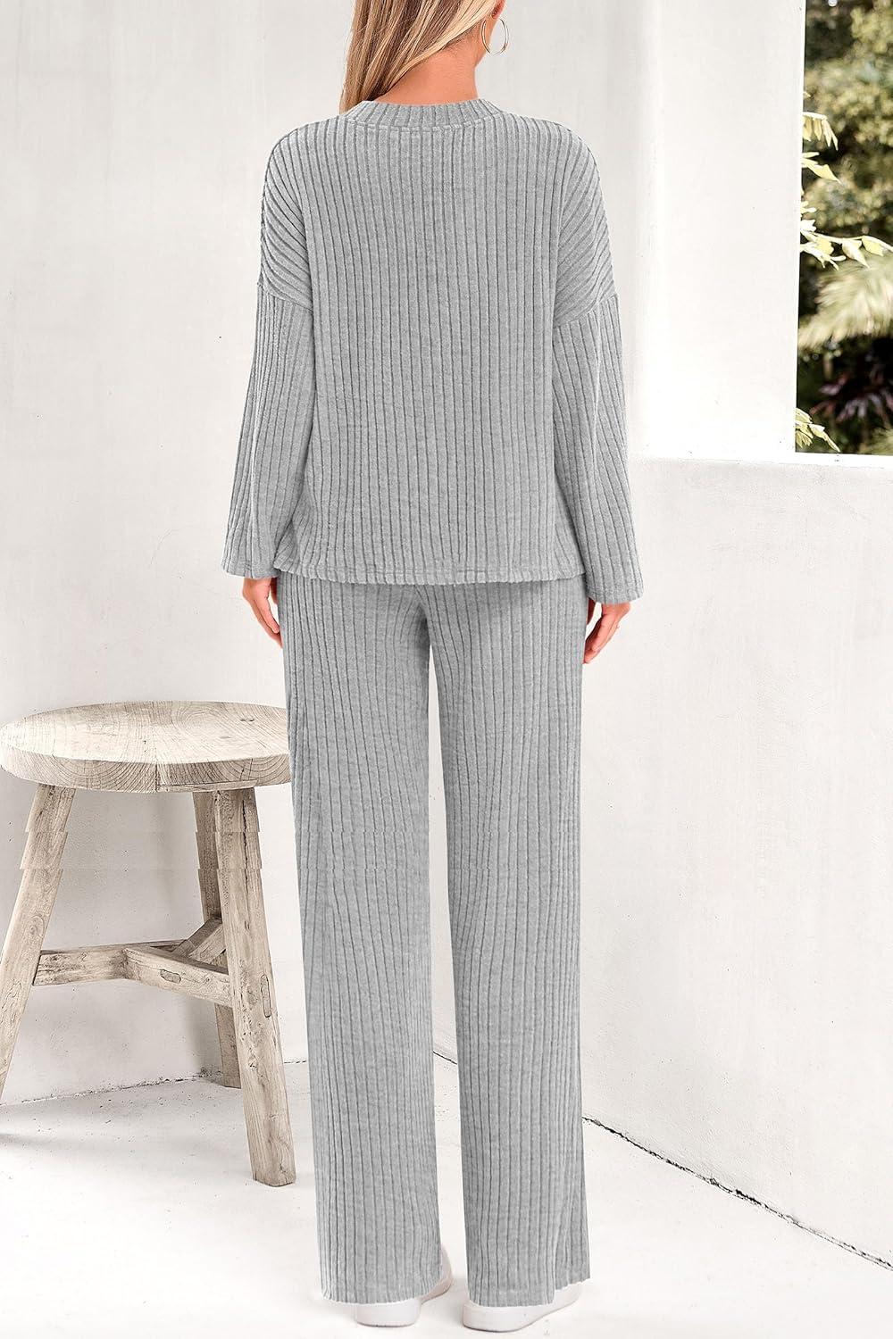 PRETTYGARDEN 2 Piece Sets for Women Fall 2025 Soft Comfy Lounge Long Sleeve Pajamas Set Knit Postpartum Pj Outfits Clothing(Grey)