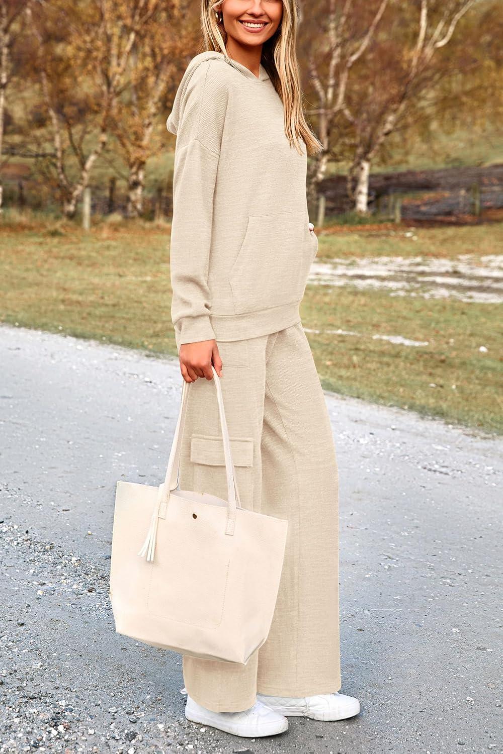 PRETTYGARDEN 2 Piece Sets for Women Fall 2025 Sweatsuits Outfits Lounge Matching Hoodie Set Travel Track Suits Winter Clothes(Beige)