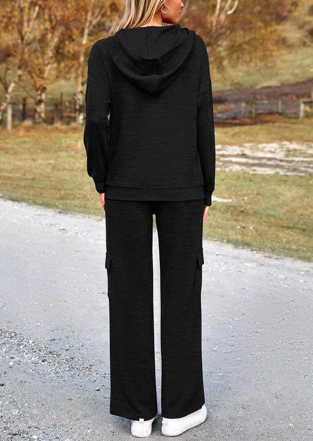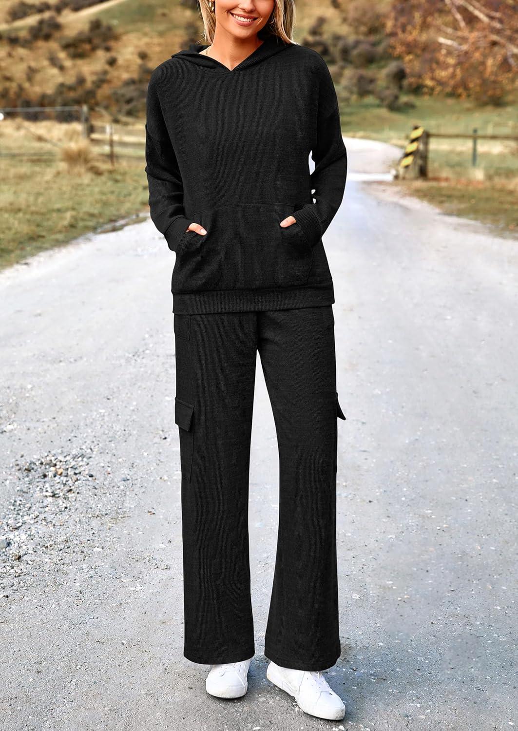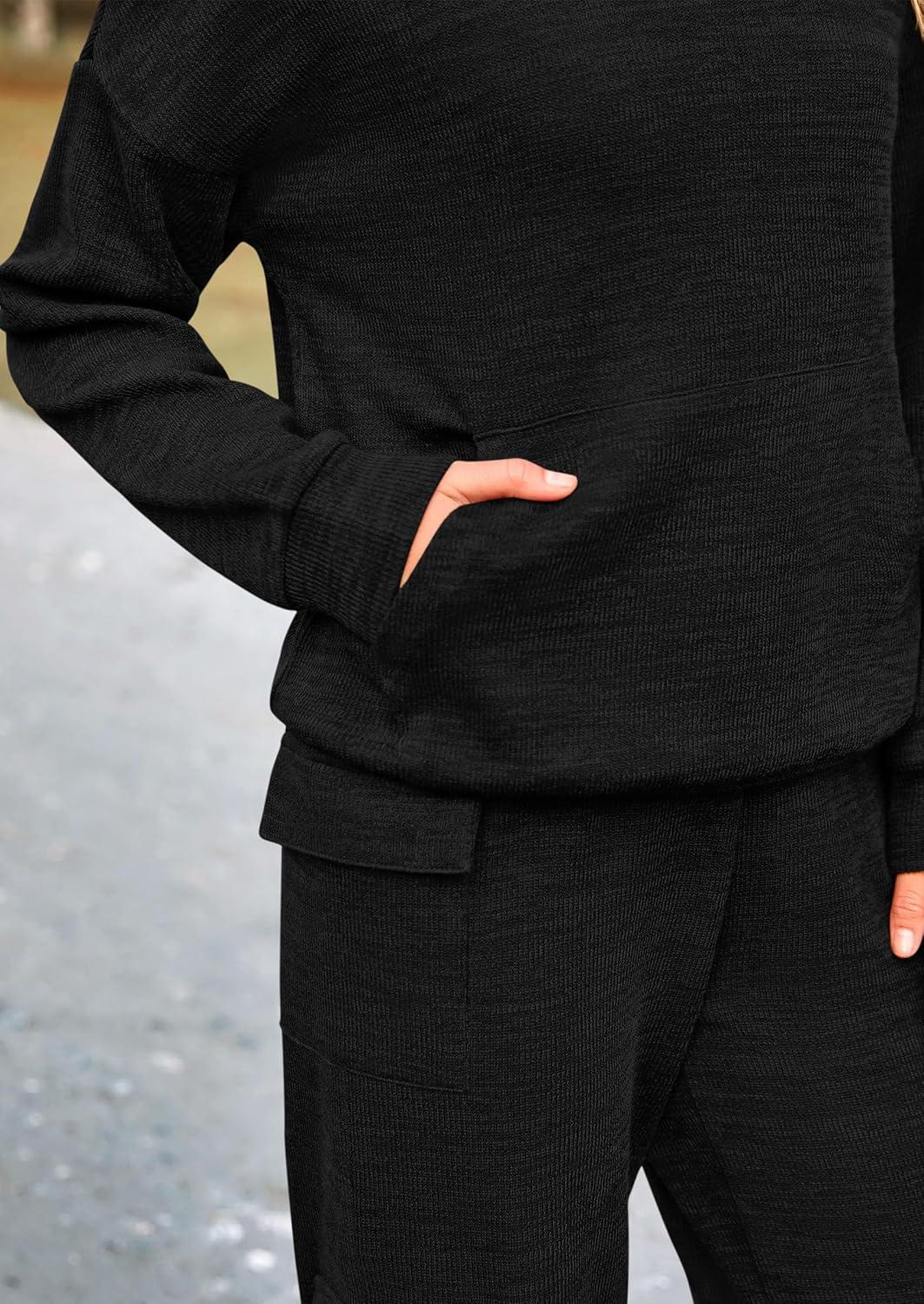 PRETTYGARDEN 2 Piece Sets for Women Fall 2025 Sweatsuits Outfits Lounge Matching Hoodie Set Travel Track Suits Winter Clothes(Black)
