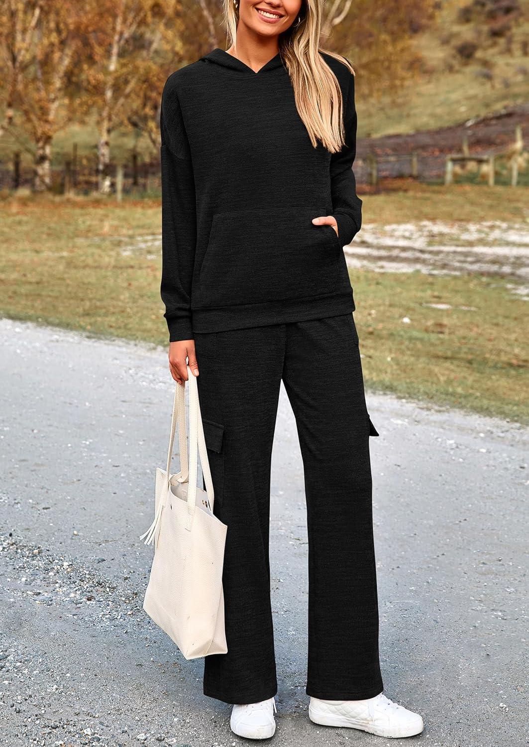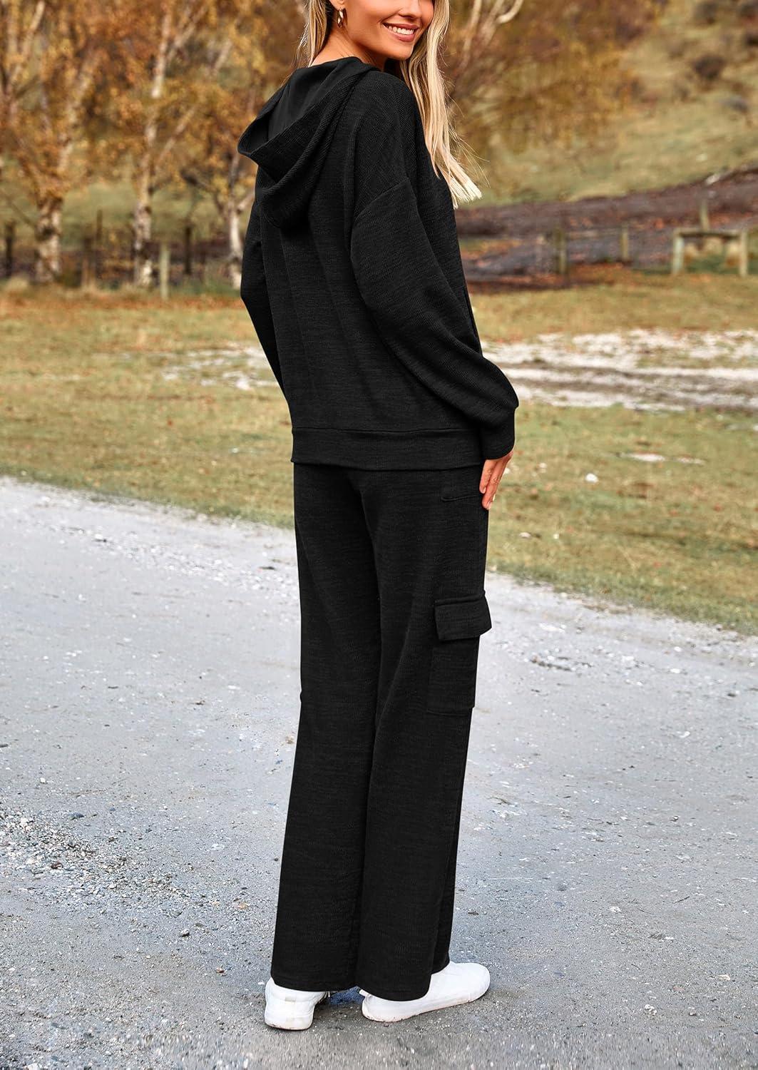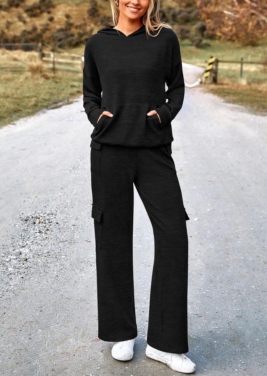 PRETTYGARDEN 2 Piece Sets for Women Fall 2025 Sweatsuits Outfits Lounge Matching Hoodie Set Travel Track Suits Winter Clothes(Black)