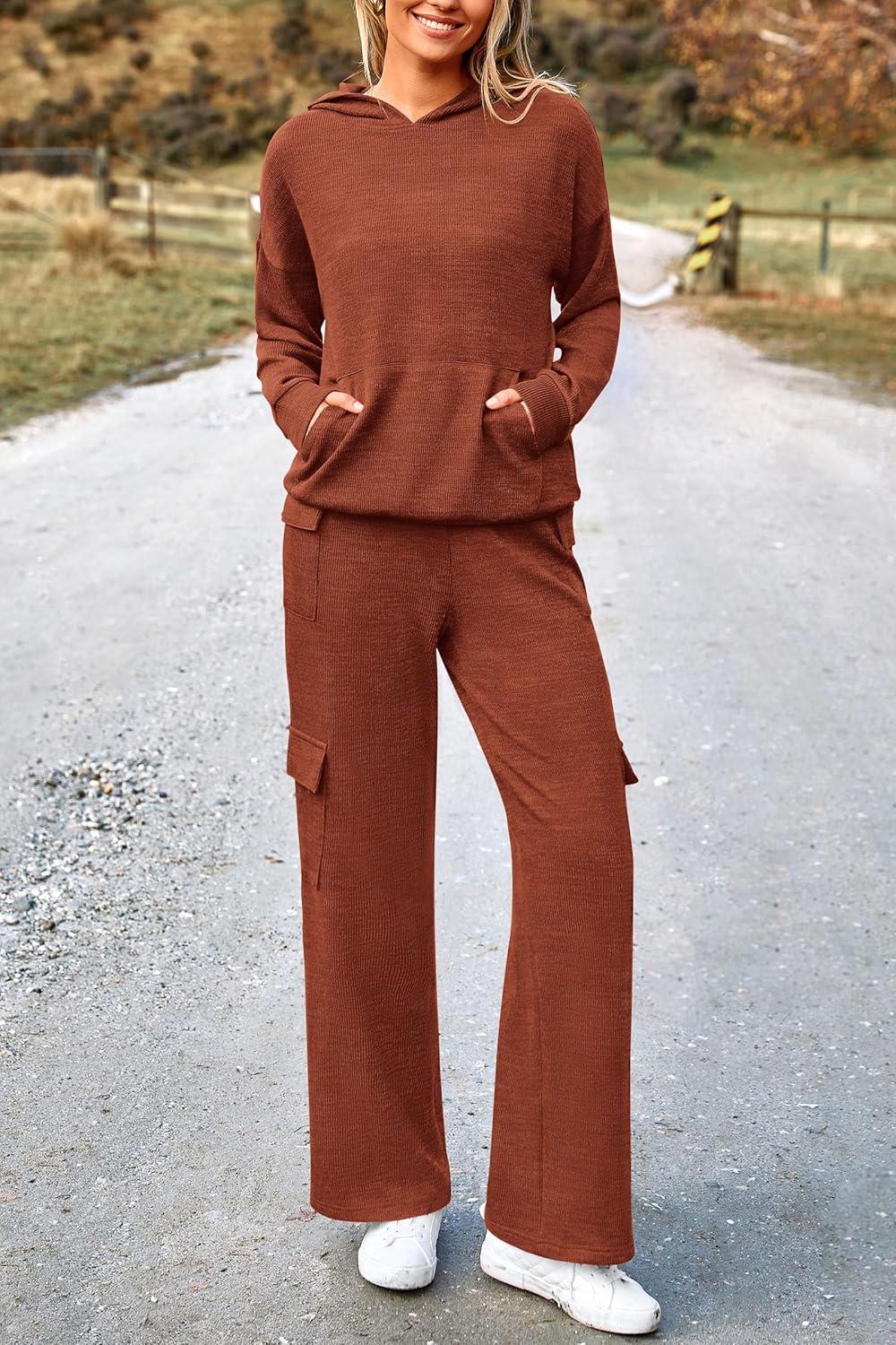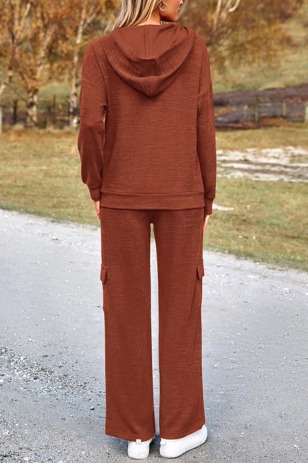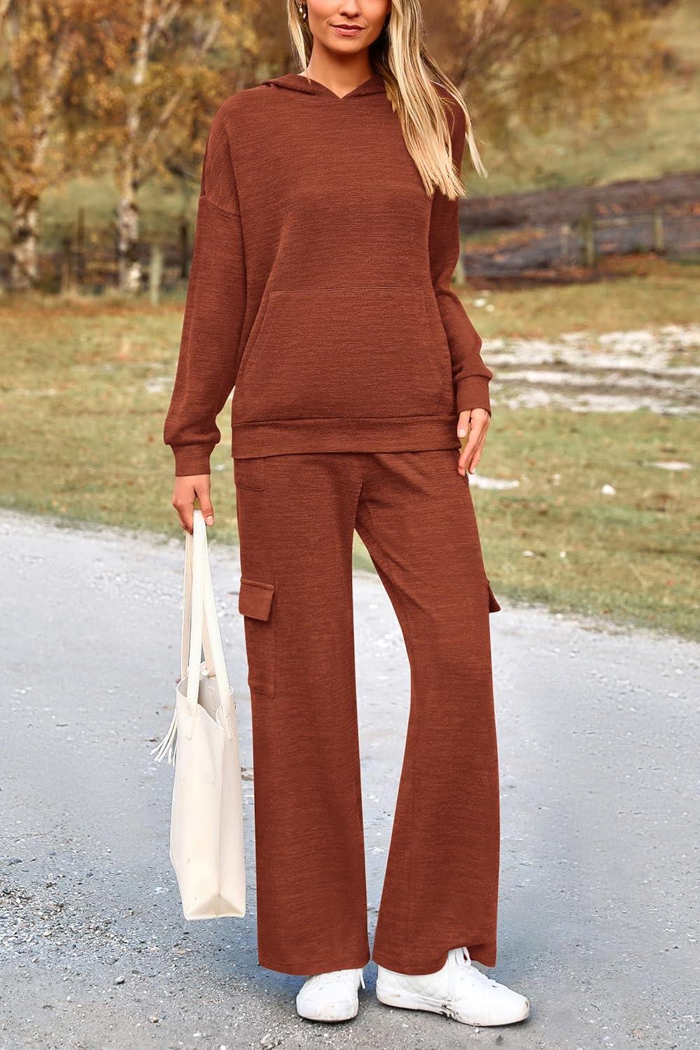 PRETTYGARDEN 2 Piece Sets for Women Fall 2025 Sweatsuits Outfits Lounge Matching Hoodie Set Travel Track Suits Winter Clothes(Brick Red)