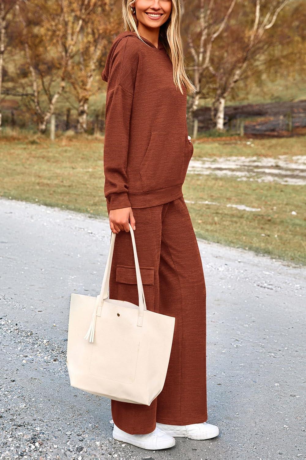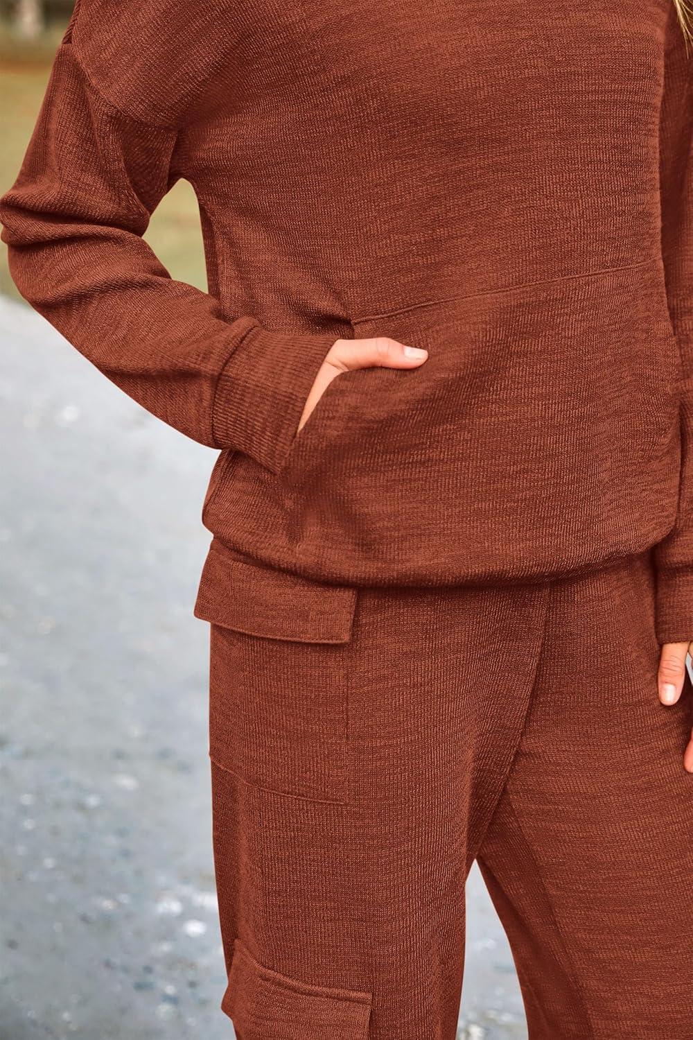 PRETTYGARDEN 2 Piece Sets for Women Fall 2025 Sweatsuits Outfits Lounge Matching Hoodie Set Travel Track Suits Winter Clothes(Brown)