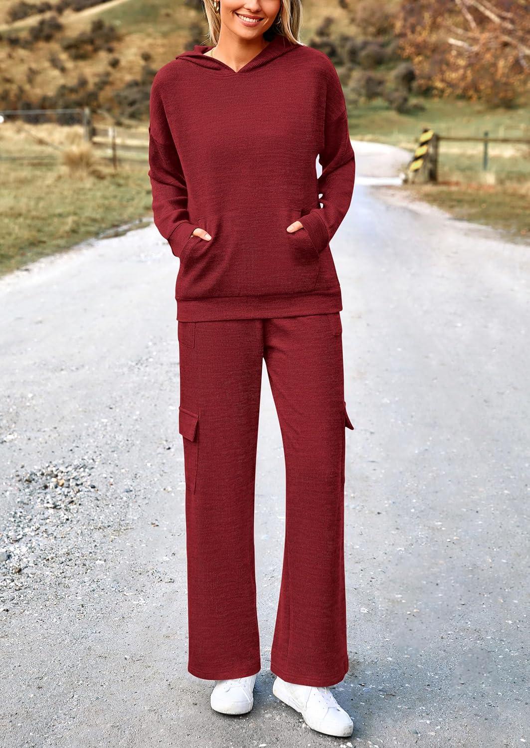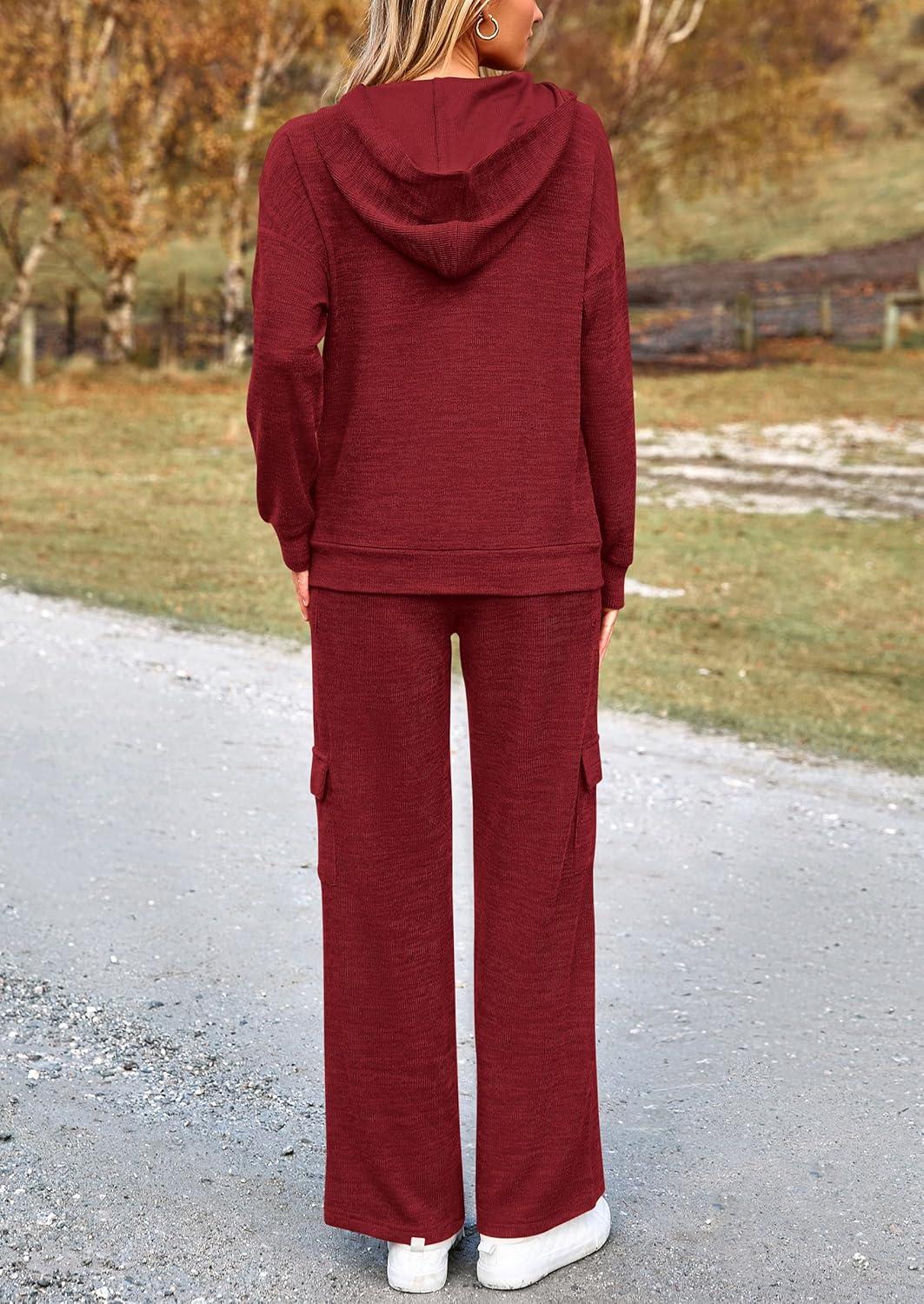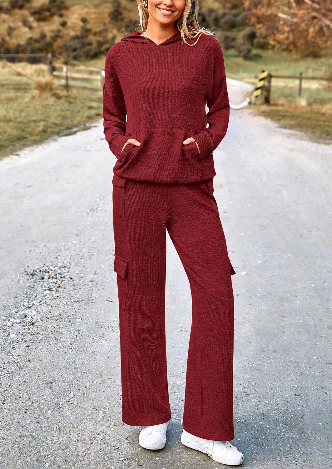 PRETTYGARDEN 2 Piece Sets for Women Fall 2025 Sweatsuits Outfits Lounge Matching Hoodie Set Travel Track Suits Winter Clothes(Wine Red)