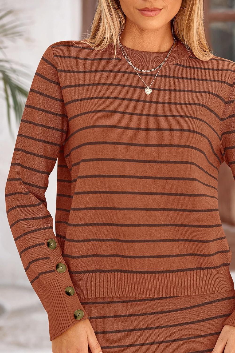 PRETTYGARDEN 2 Piece Skirts Sets For Women Fall Fashion 2025 Striped Sweater Dress Knit Lounge Travel Outfits Winter Clothing(Caramel Stripe)