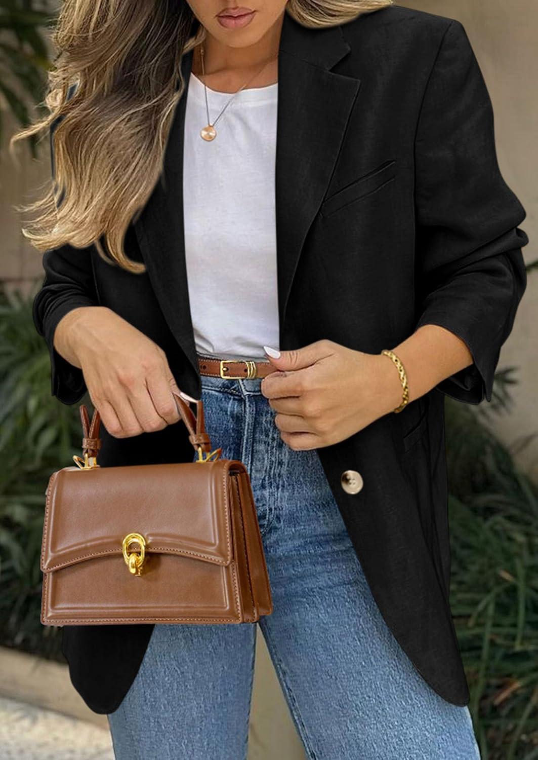 PRETTYGARDEN 2025 Blazers for Women Business Casual Long Sleeve Lapel Open Front Suit Jacket Work Blazer with Pockets(Black)