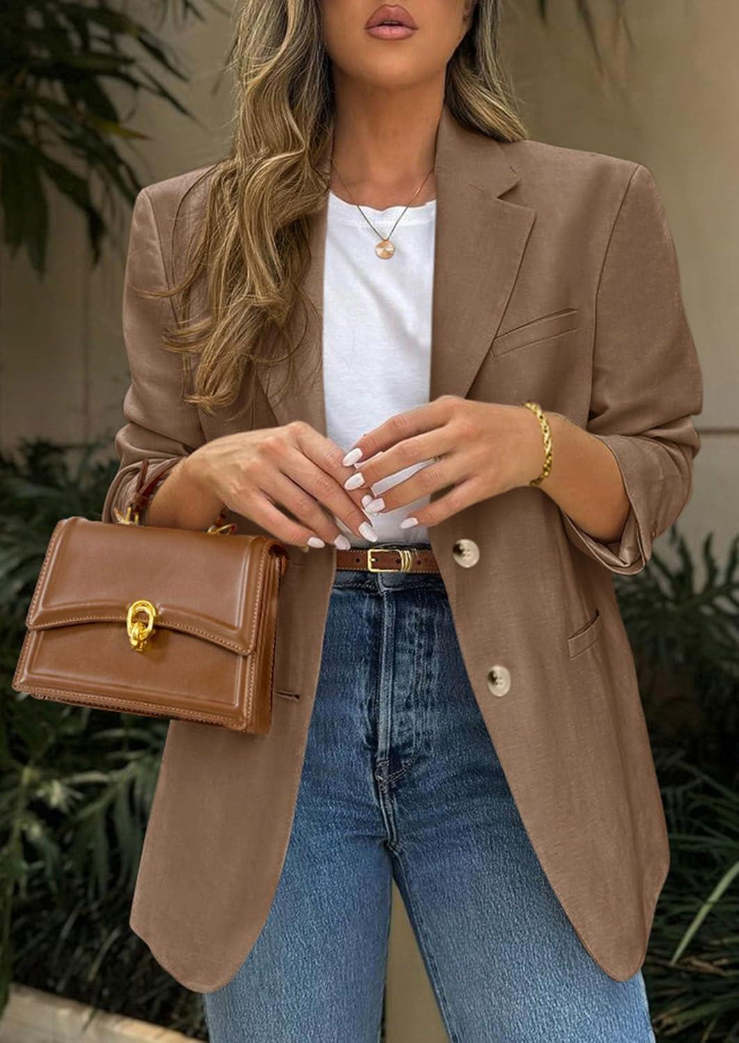 PRETTYGARDEN 2025 Blazers for Women Business Casual Long Sleeve Lapel Open Front Suit Jacket Work Blazer with Pockets(Brown)