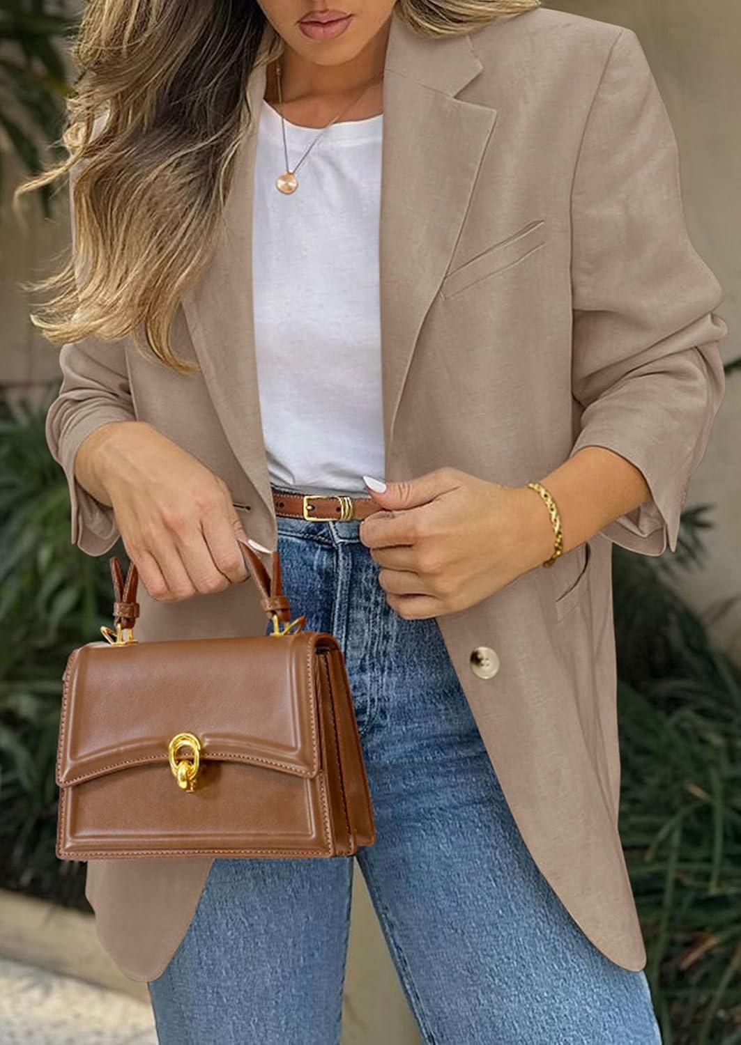 PRETTYGARDEN 2025 Blazers for Women Business Casual Long Sleeve Lapel Open Front Suit Jacket Work Blazer with Pockets(Camel)