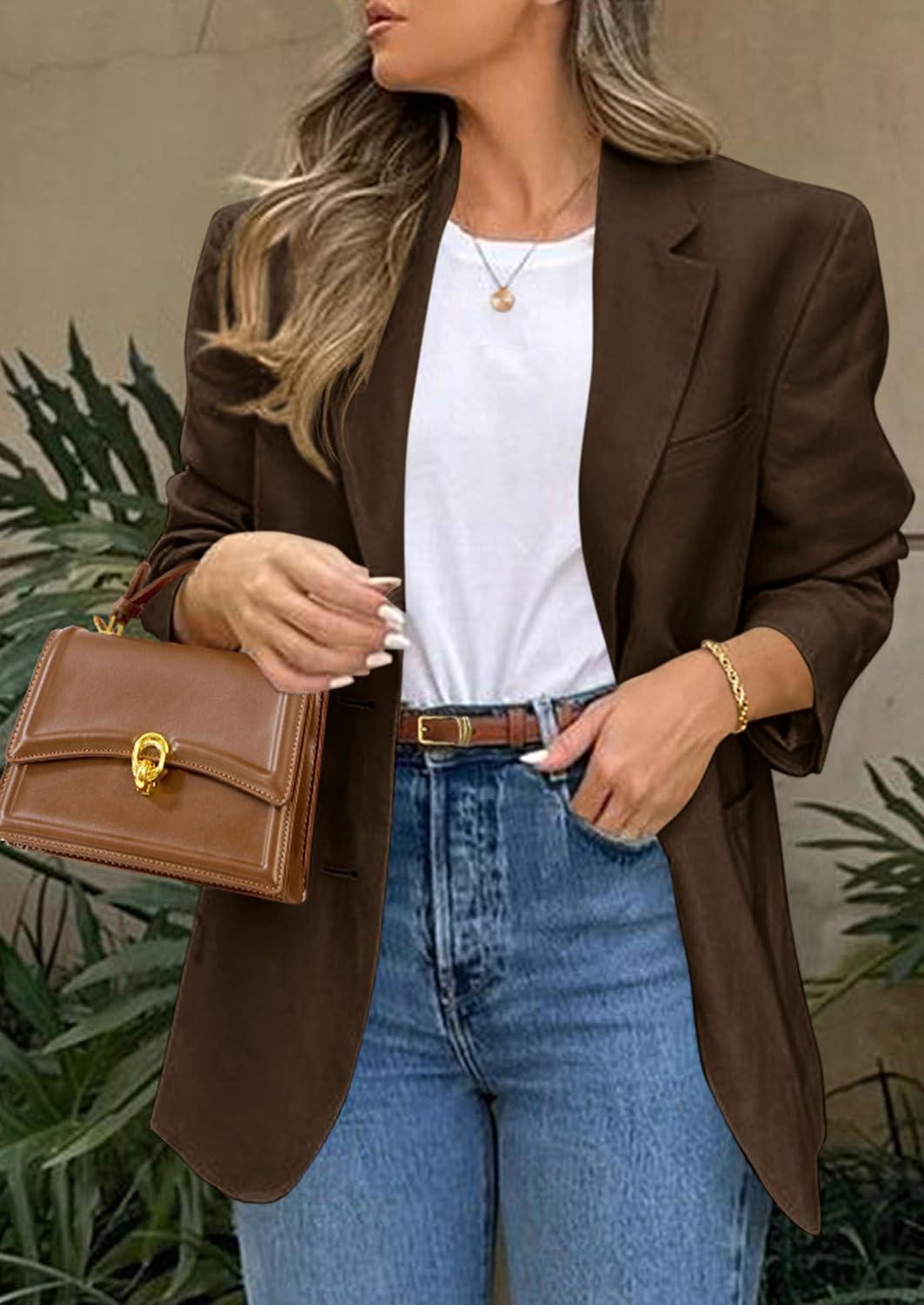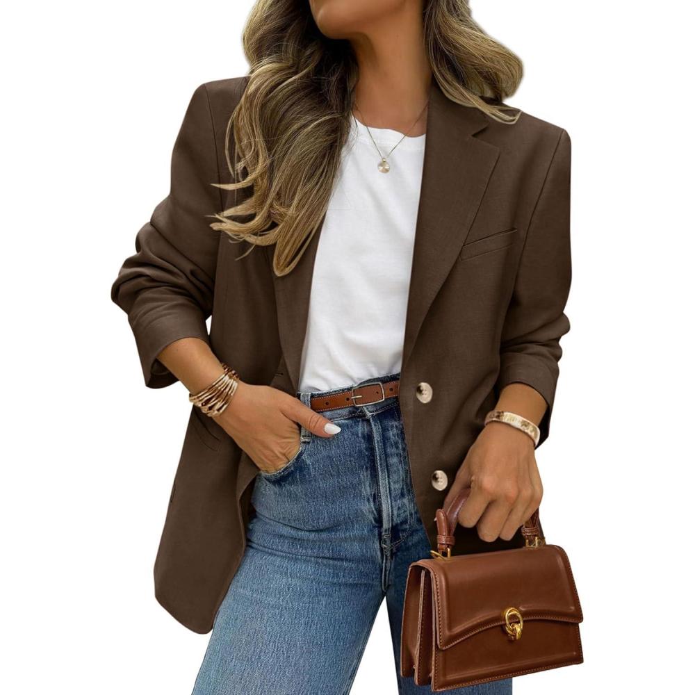 PRETTYGARDEN 2025 Blazers for Women Business Casual Long Sleeve Lapel Open Front Suit Jacket Work Blazer with Pockets(Dark Brown)