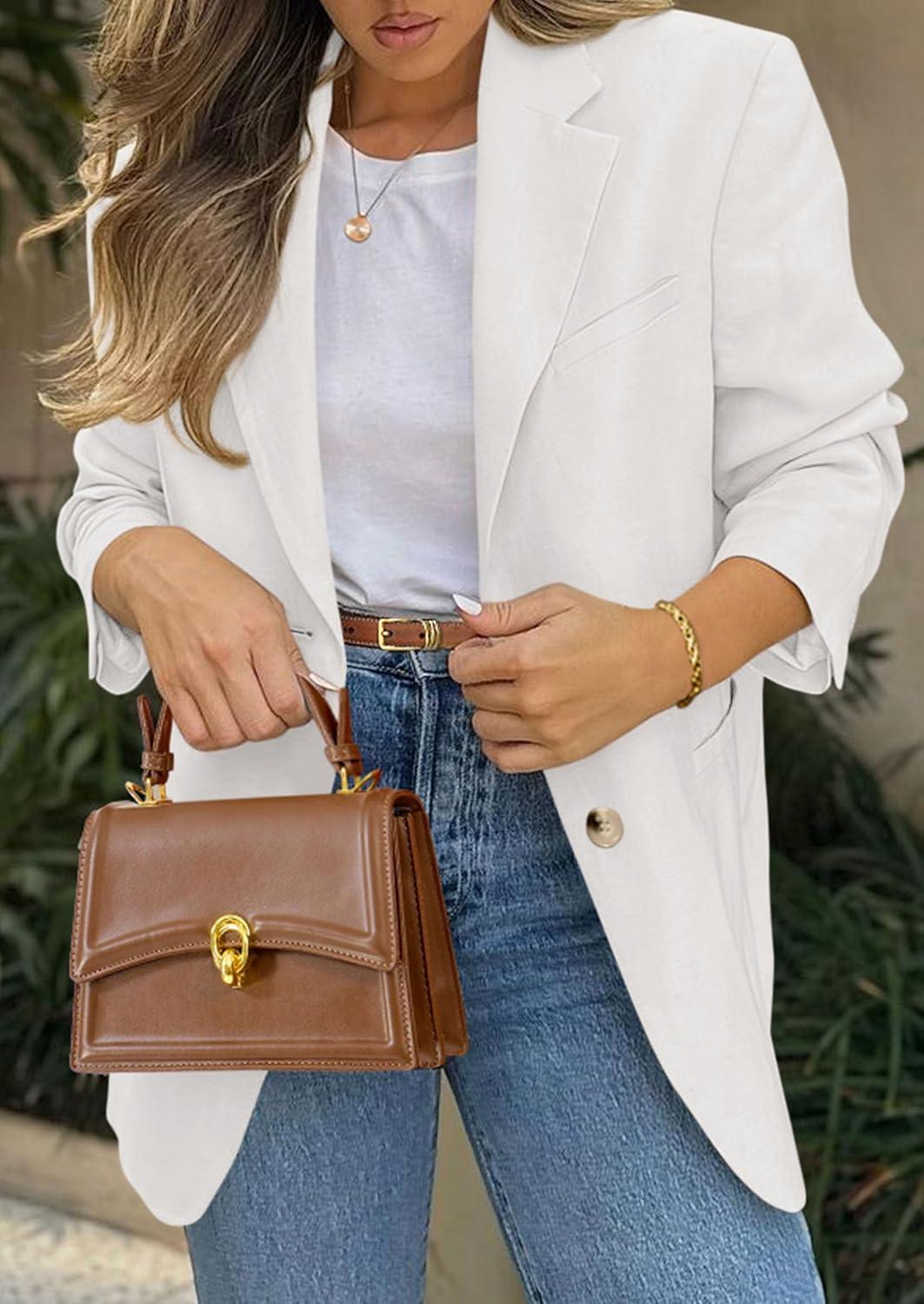 PRETTYGARDEN 2025 Blazers for Women Business Casual Long Sleeve Lapel Open Front Suit Jacket Work Blazer with Pockets(White)