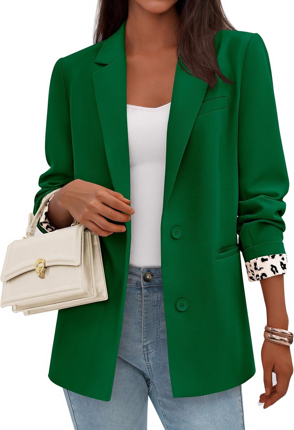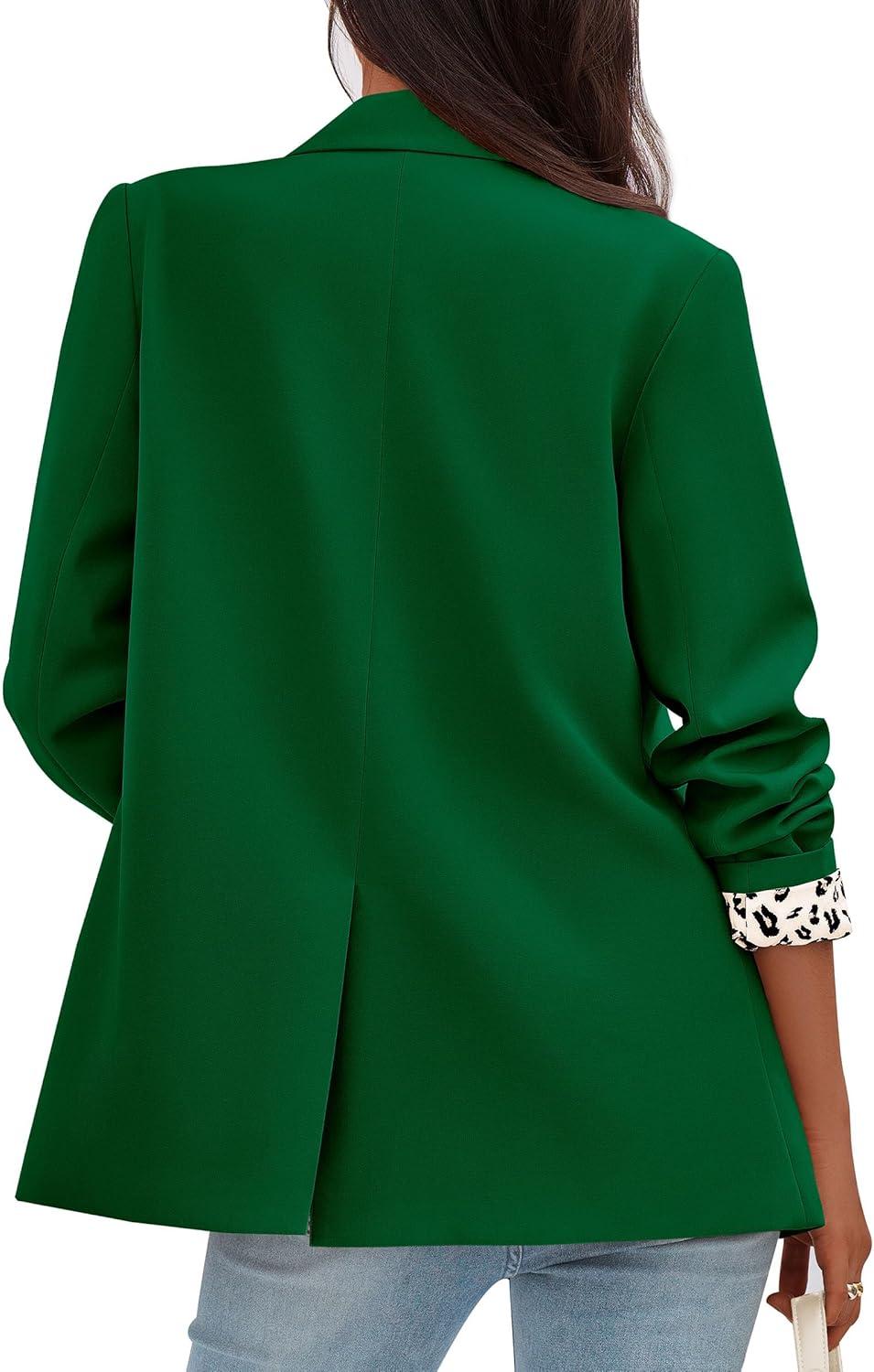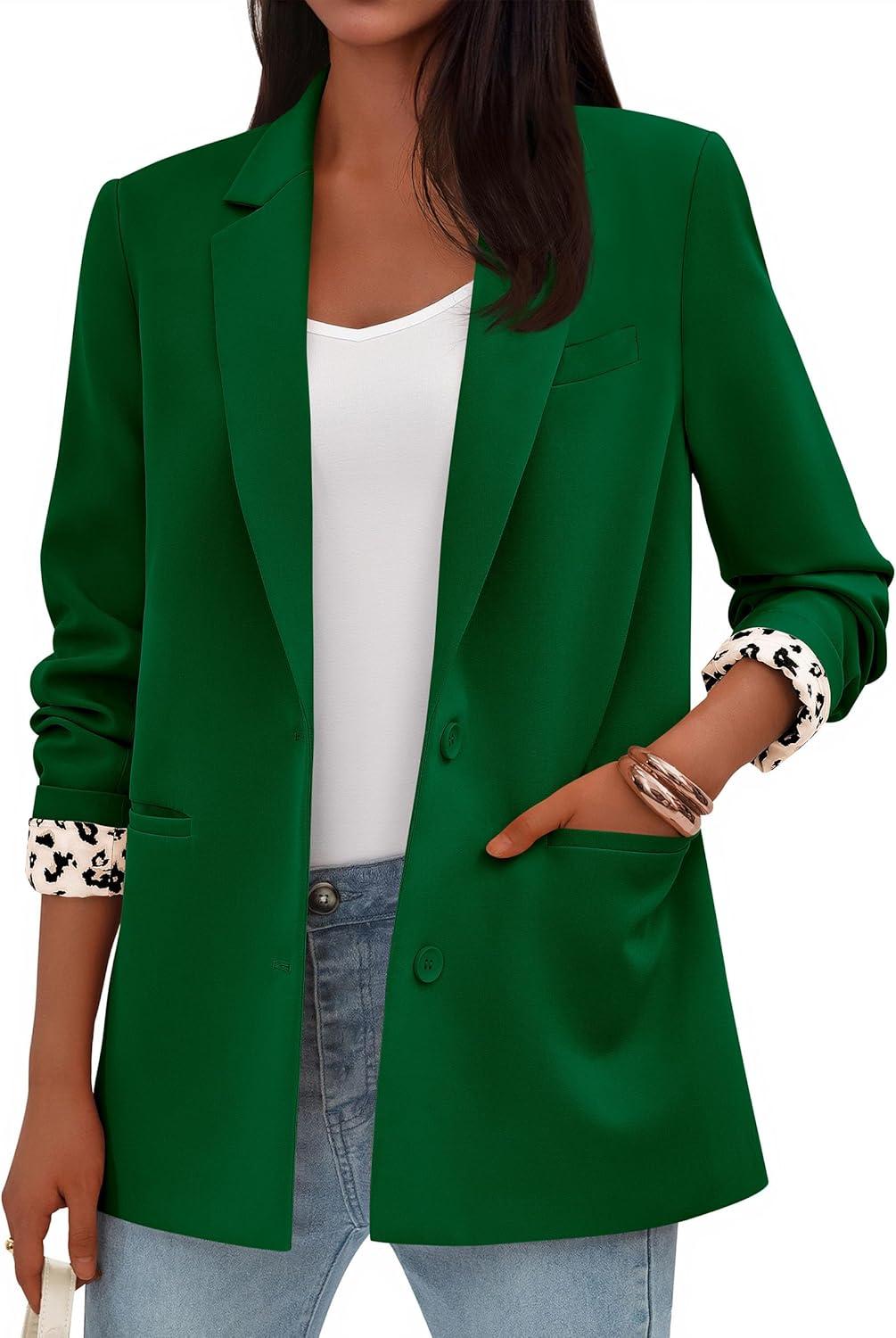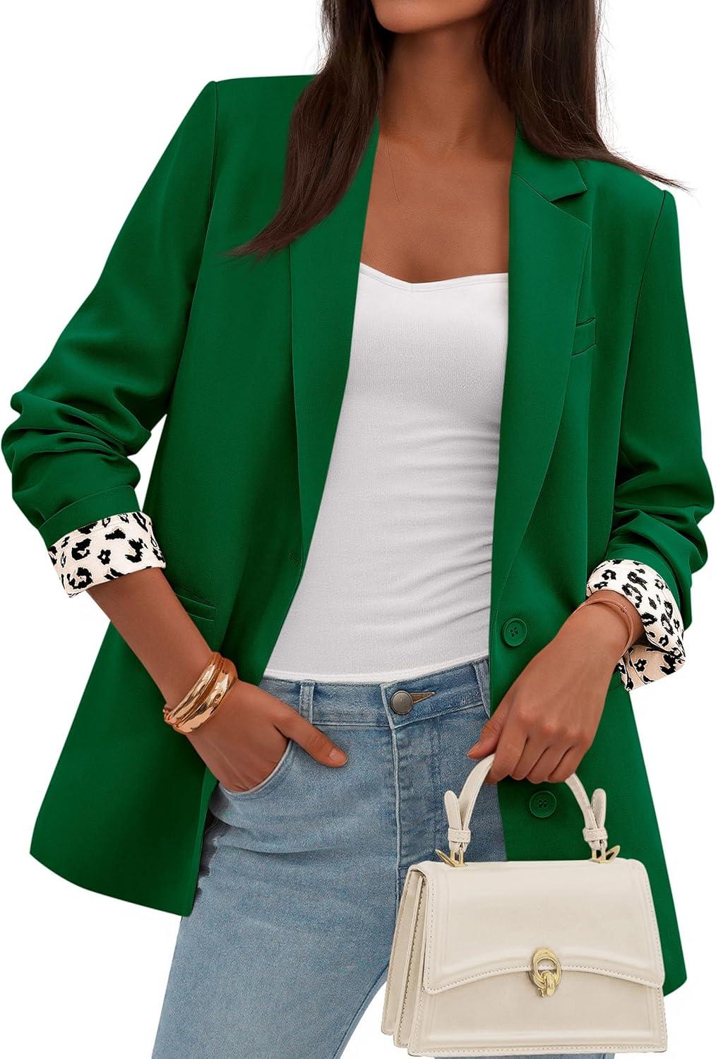 PRETTYGARDEN Blazers for Women 2025 Fall Work Office Suit Jackets Dressy Open Front Leopard Blazer Business Casual Outfits(Green)