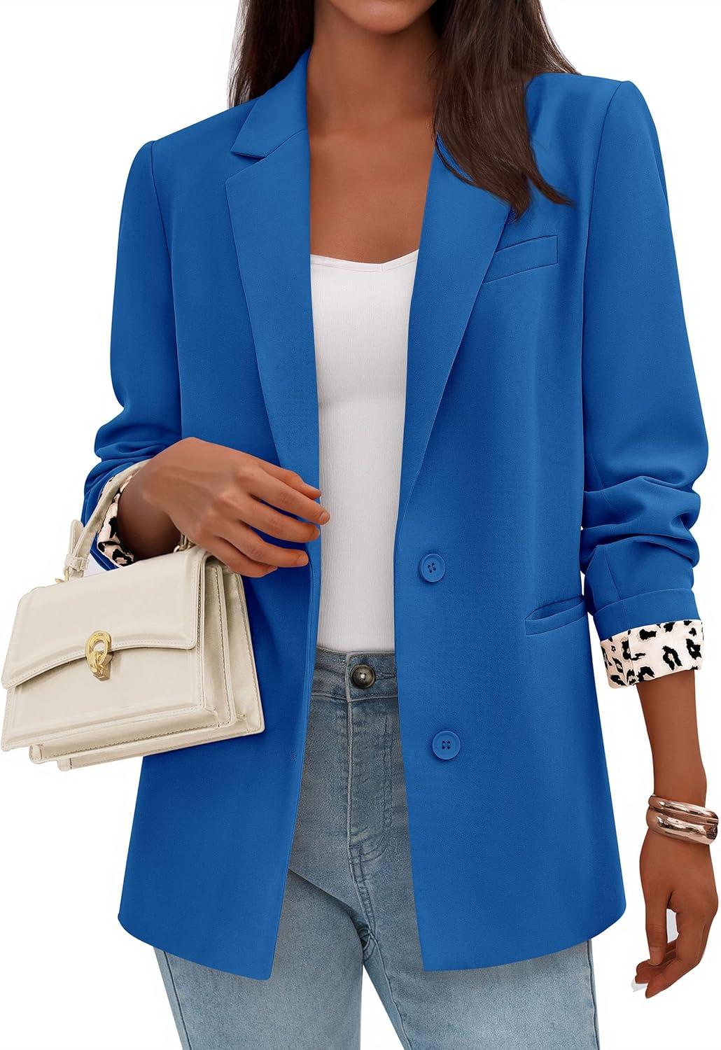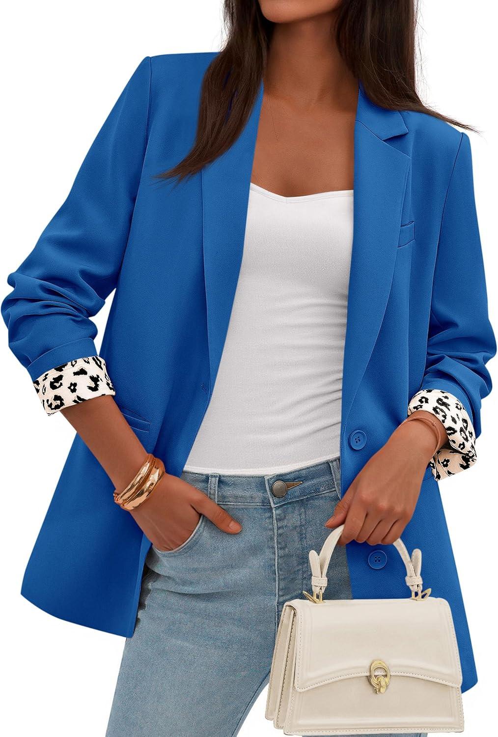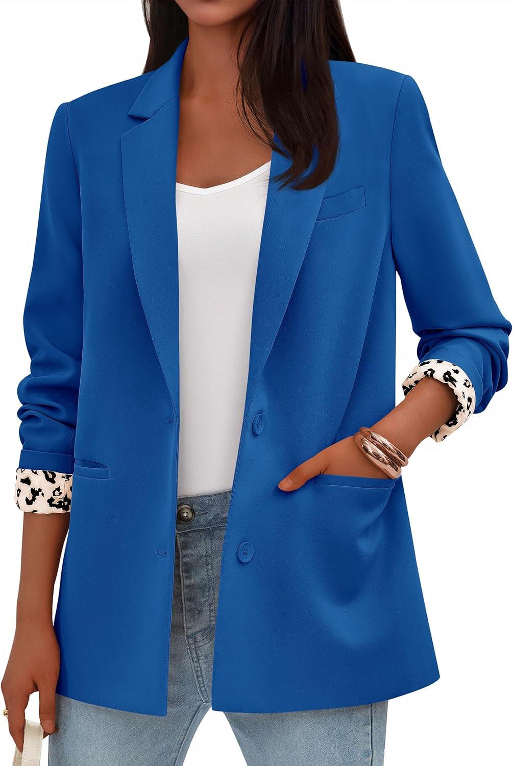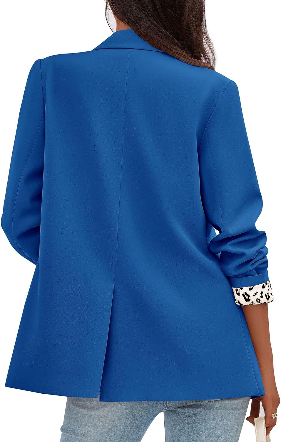 PRETTYGARDEN Blazers for Women 2025 Fall Work Office Suit Jackets Dressy Open Front Leopard Blazer Business Casual Outfits(Royal Blue)