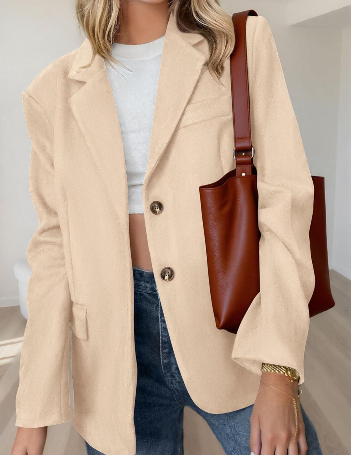 PRETTYGARDEN Blazers for Women Business Casual 2025 Fall Fashion Dressy Oversized Faux Suede Suit Jackets Work Office Clothes(Beige)