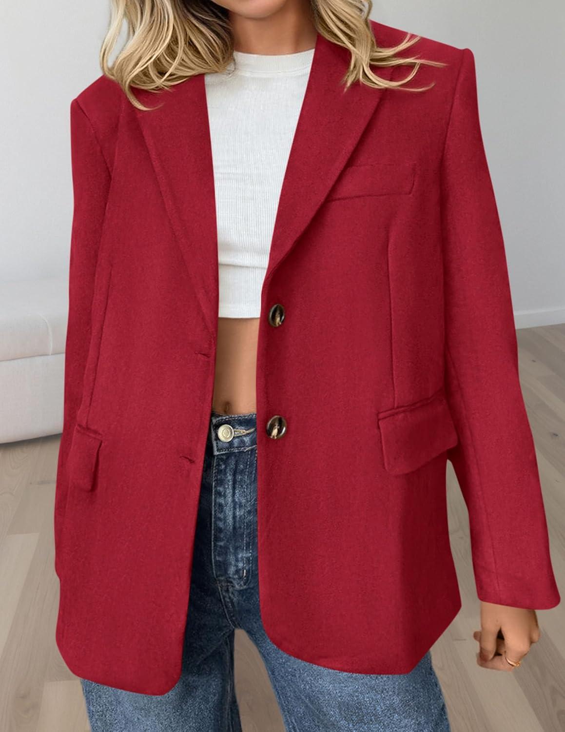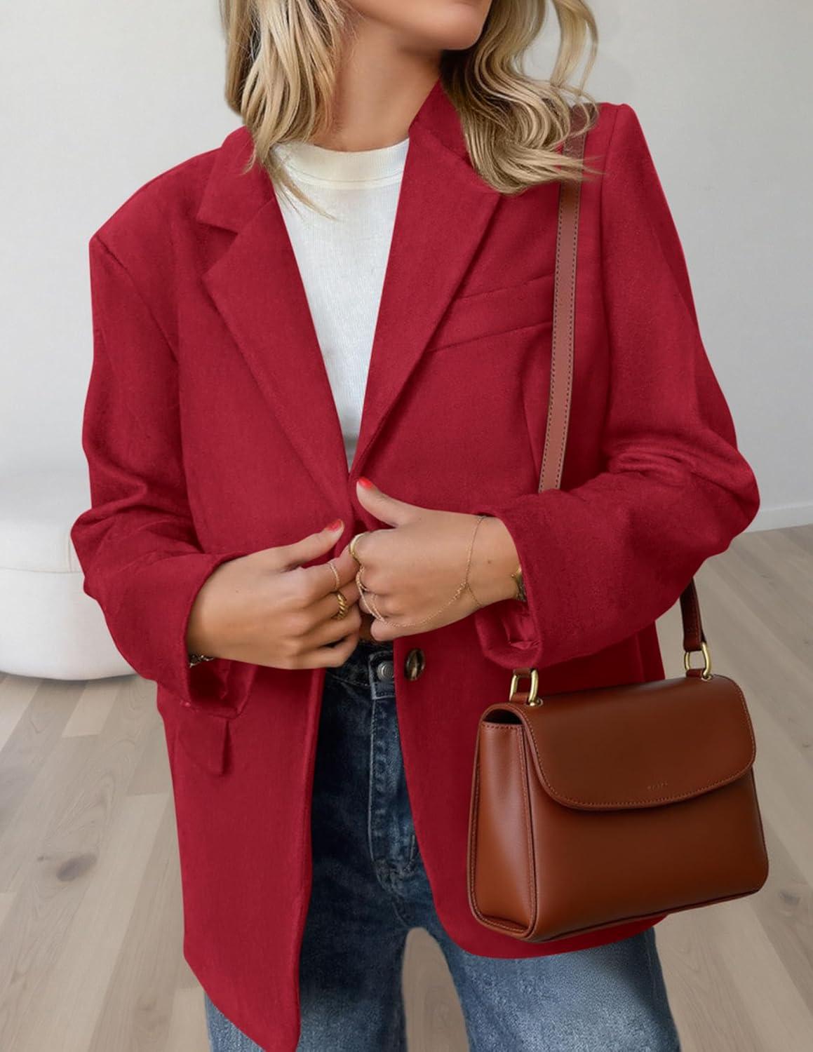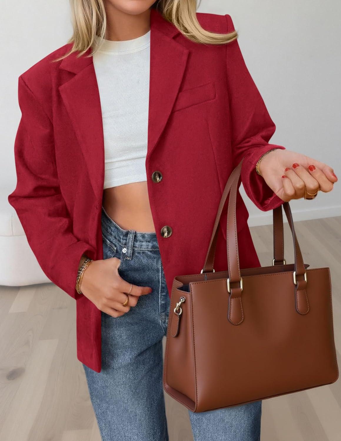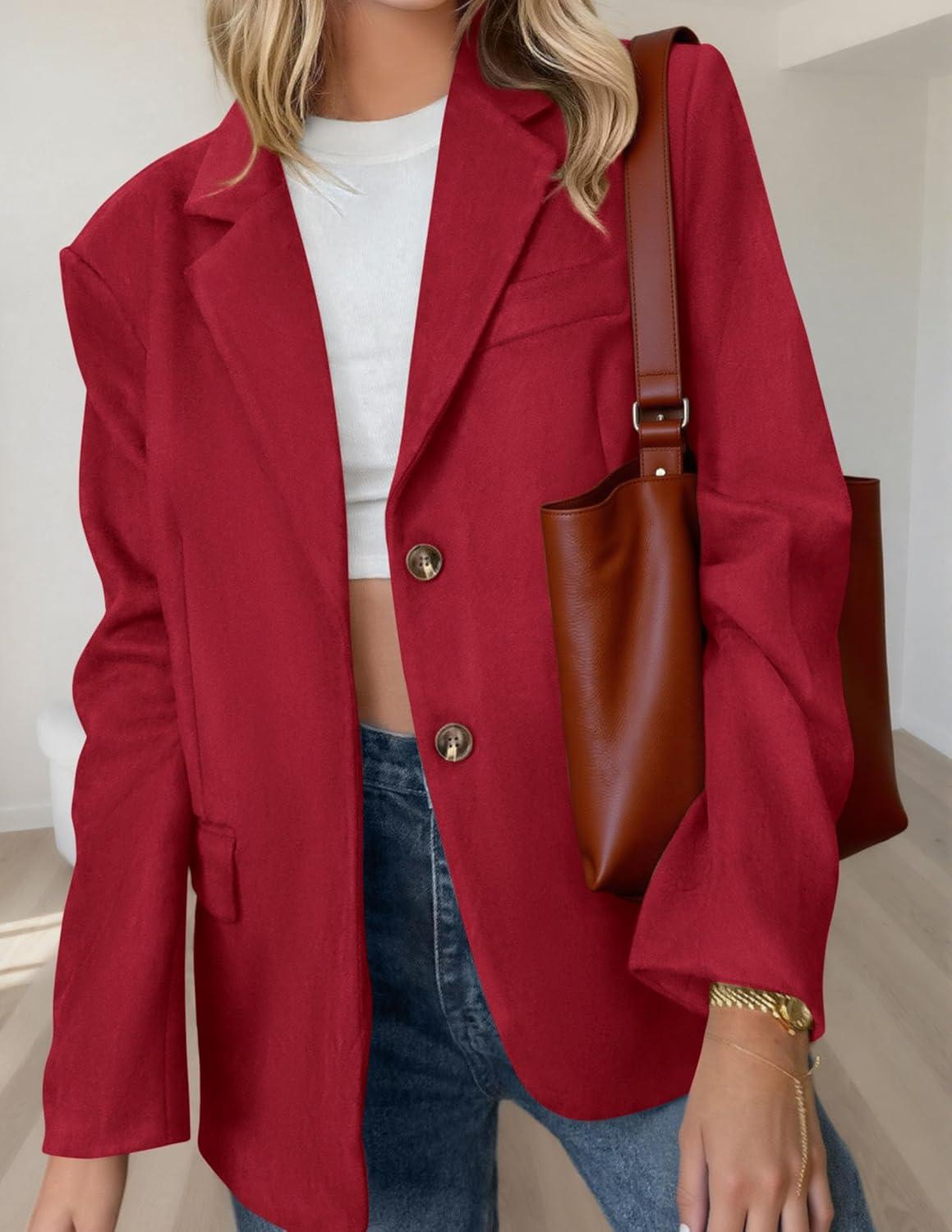 PRETTYGARDEN Blazers for Women Business Casual 2025 Fall Fashion Dressy Oversized Faux Suede Suit Jackets Work Office Clothes(Red)