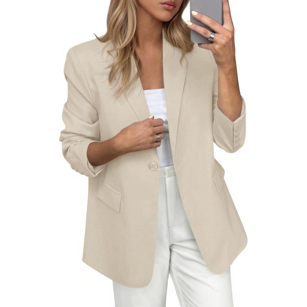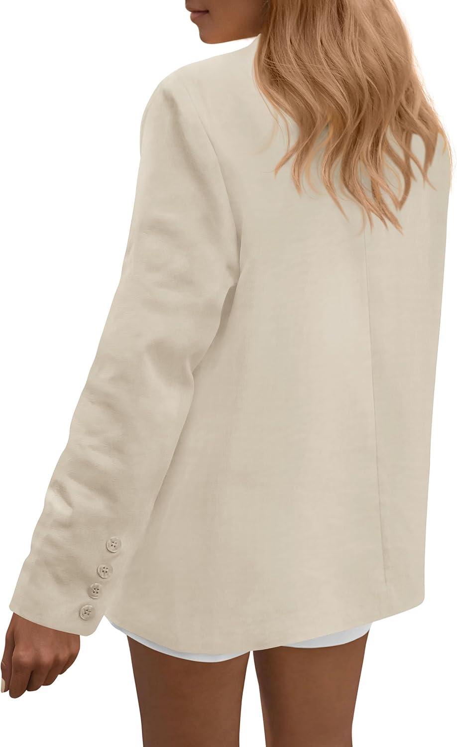 PRETTYGARDEN Blazers for Women Business Casual Outfits 2025 Fall Open Front Long Sleeve Suit Jackets Office Work Clothes(Beige)