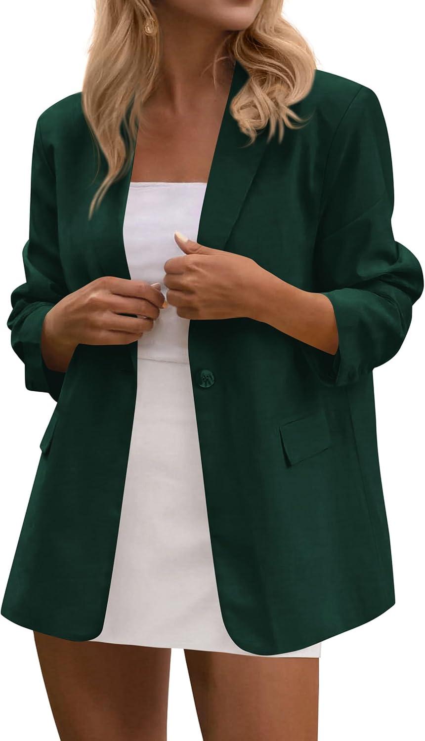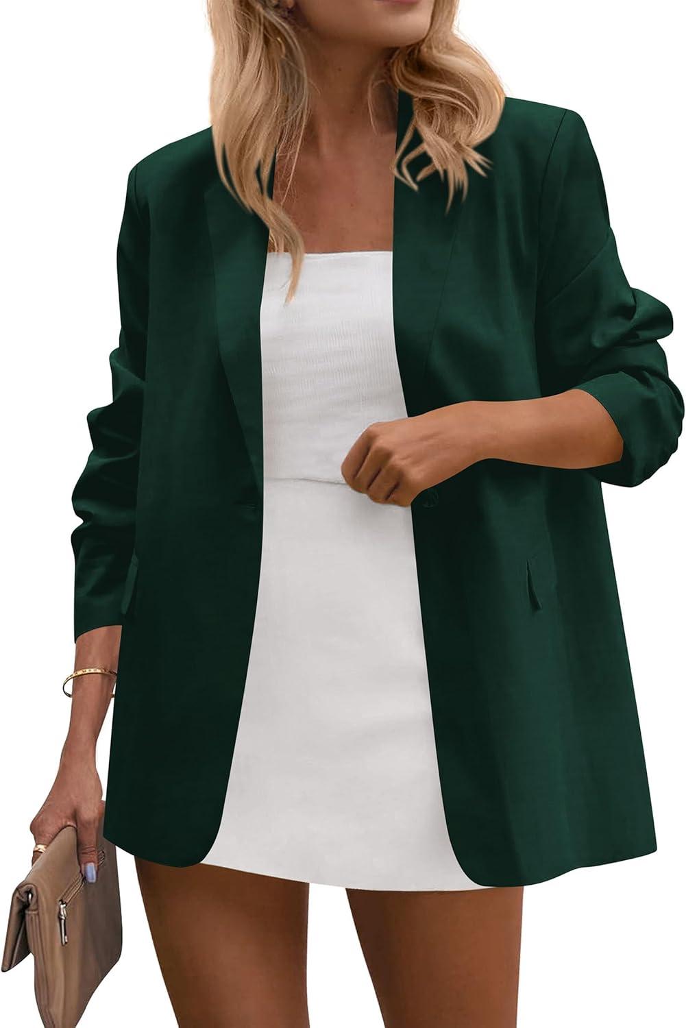 PRETTYGARDEN Blazers for Women Business Casual Outfits 2025 Fall Open Front Long Sleeve Suit Jackets Office Work Clothes(Dark Green)