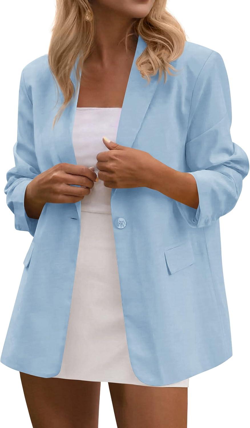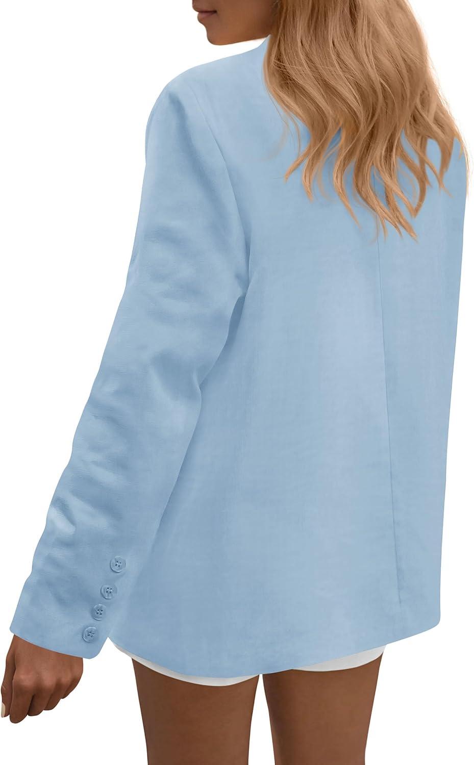 imagePRETTYGARDEN Blazers for Women Business Casual Outfits 2025 Fall Open Front Long Sleeve Suit Jackets Office Work ClothesLight Blue