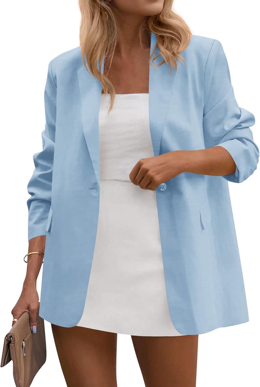 PRETTYGARDEN Blazers for Women Business Casual Outfits 2025 Fall Open Front Long Sleeve Suit Jackets Office Work Clothes(Light Blue)