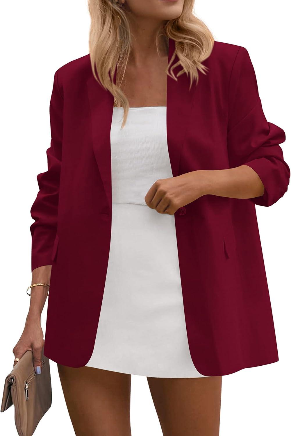PRETTYGARDEN Blazers for Women Business Casual Outfits 2025 Fall Open Front Long Sleeve Suit Jackets Office Work Clothes(Wine Red)