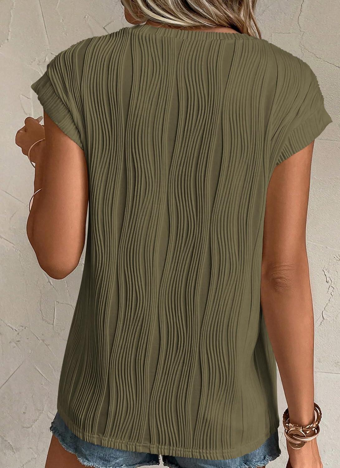 PRETTYGARDEN Blouses for Women Dressy Casual 2025 Spring Summer Business Office Tops Cap Sleeve Textured Cute Work Shirt(Army Green)