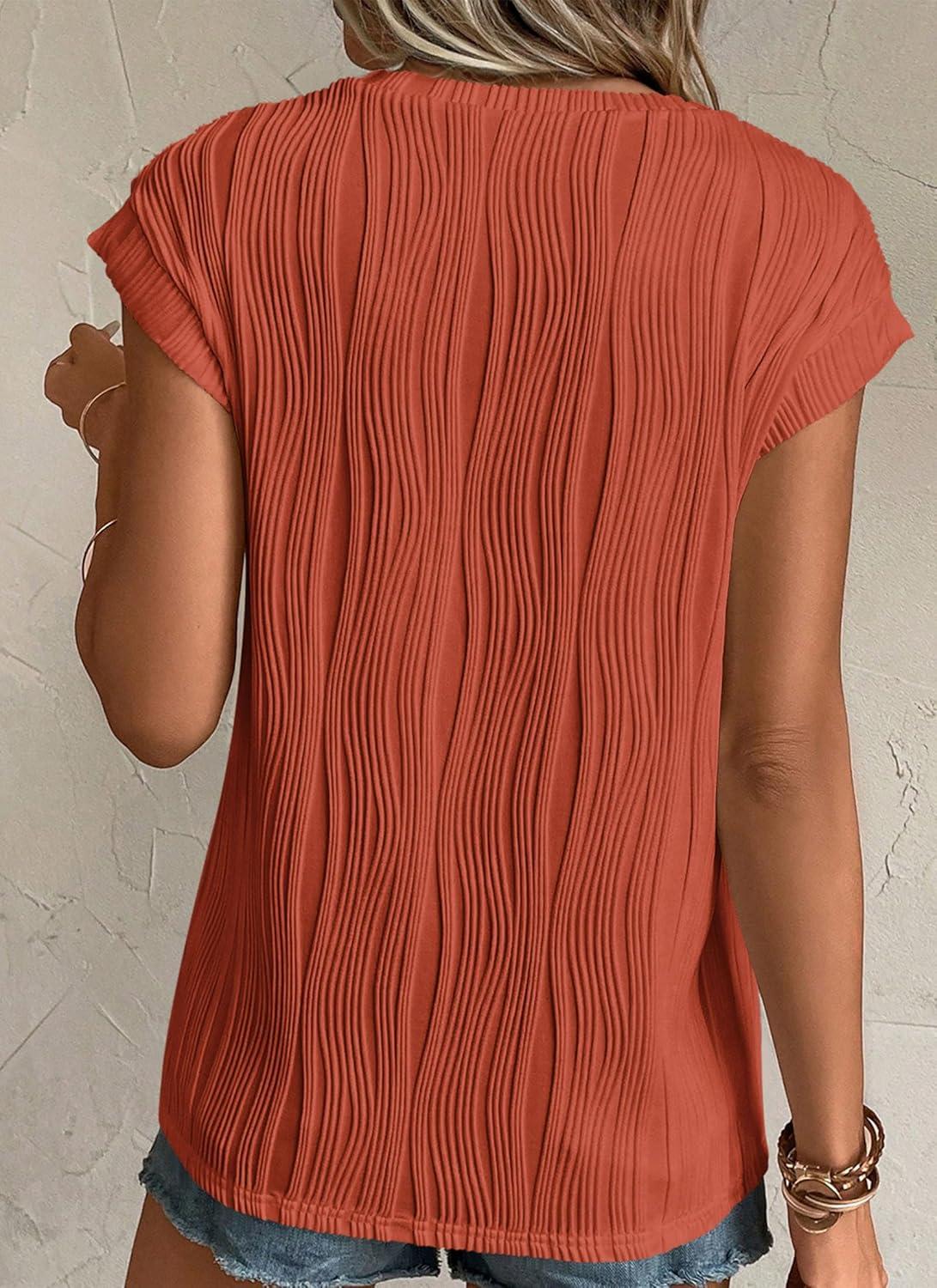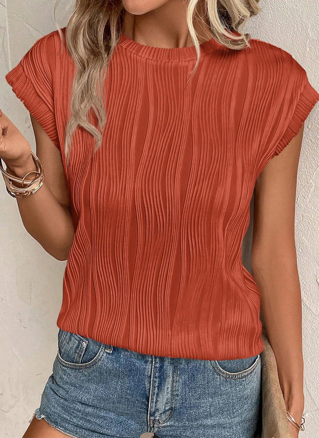 PRETTYGARDEN Blouses for Women Dressy Casual 2025 Spring Summer Business Office Tops Cap Sleeve Textured Cute Work Shirt(Brick Red)
