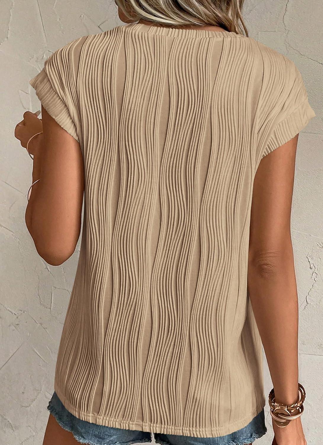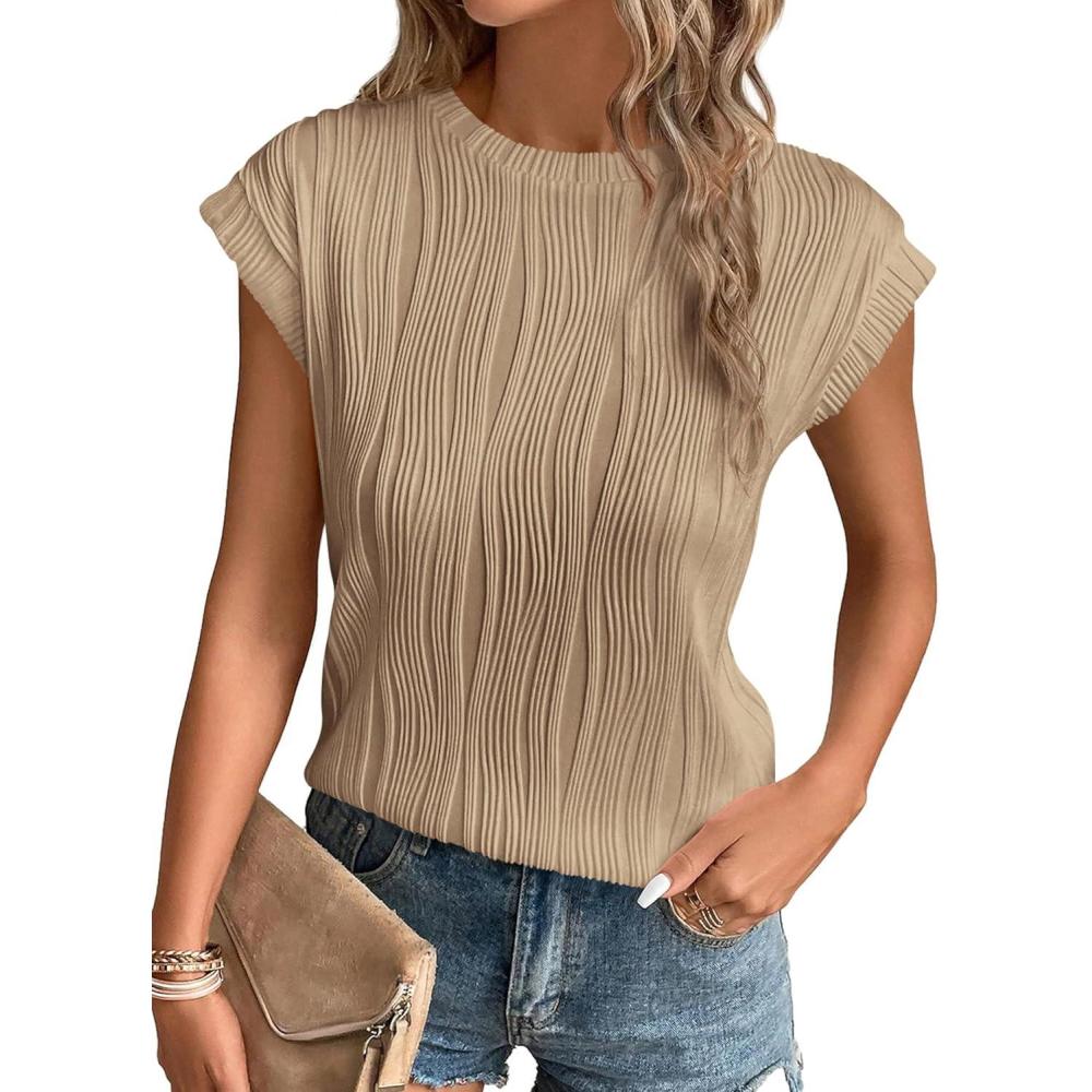 PRETTYGARDEN Blouses for Women Dressy Casual 2025 Spring Summer Business Office Tops Cap Sleeve Textured Cute Work Shirt(Khaki)