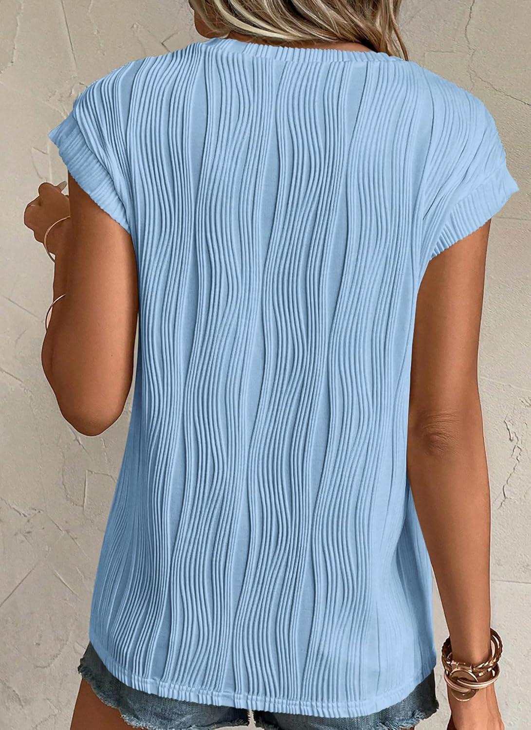 PRETTYGARDEN Blouses for Women Dressy Casual 2025 Spring Summer Business Office Tops Cap Sleeve Textured Cute Work Shirt(Light Blue)