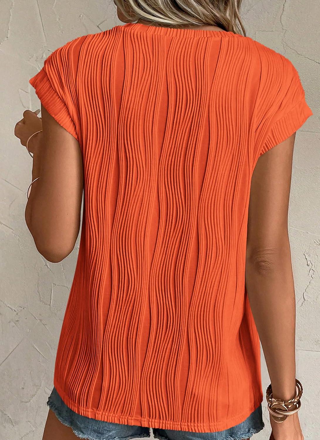 PRETTYGARDEN Blouses for Women Dressy Casual 2025 Spring Summer Business Office Tops Cap Sleeve Textured Cute Work Shirt(Orange)