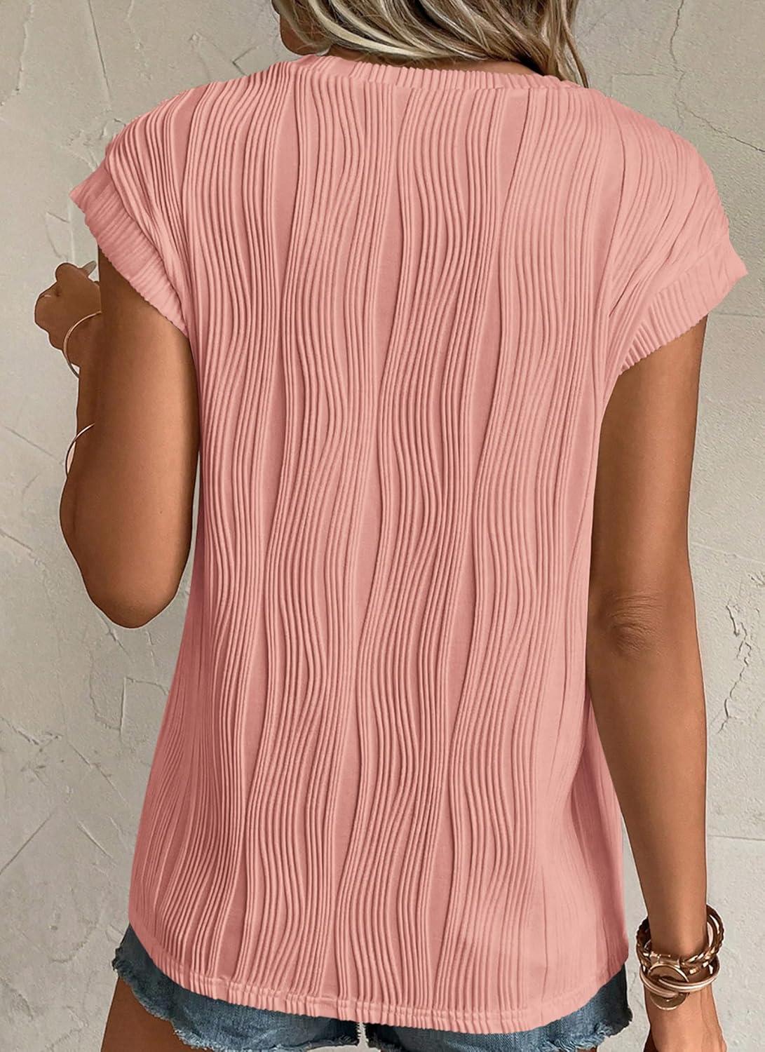 PRETTYGARDEN Blouses for Women Dressy Casual 2025 Spring Summer Business Office Tops Cap Sleeve Textured Cute Work Shirt(Pink)