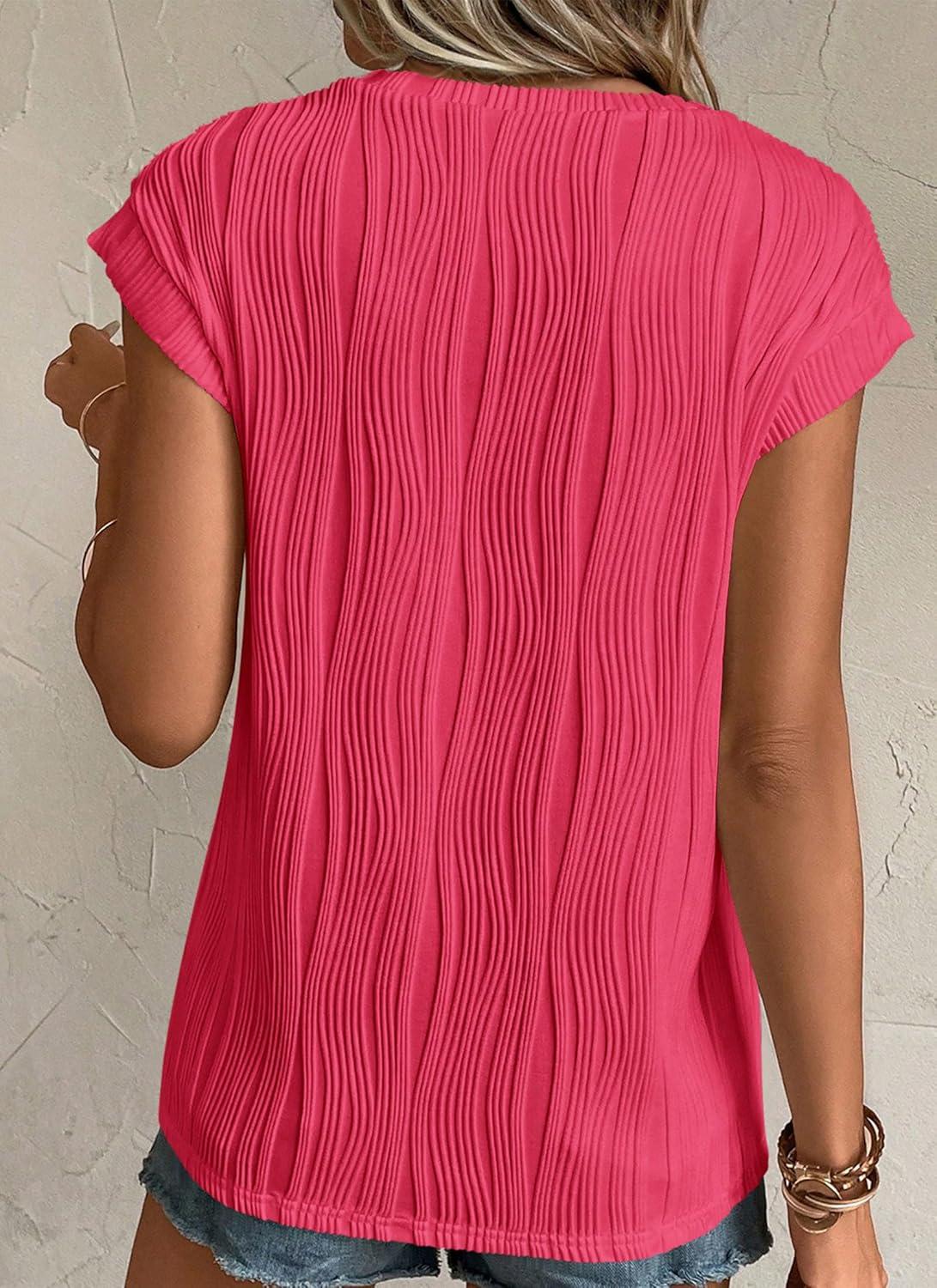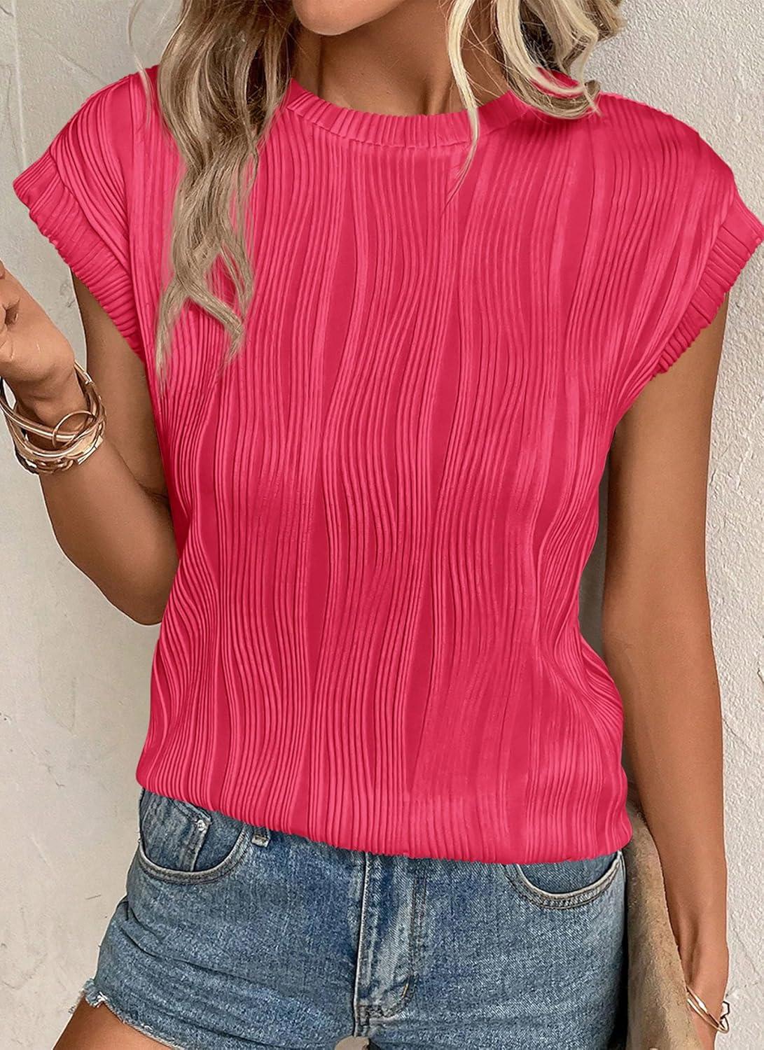 PRETTYGARDEN Blouses for Women Dressy Casual 2025 Spring Summer Business Office Tops Cap Sleeve Textured Cute Work Shirt(Rose Red)