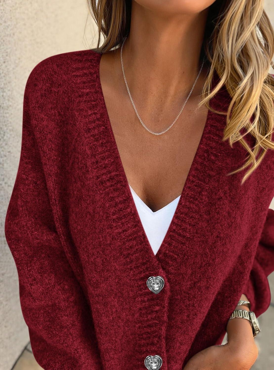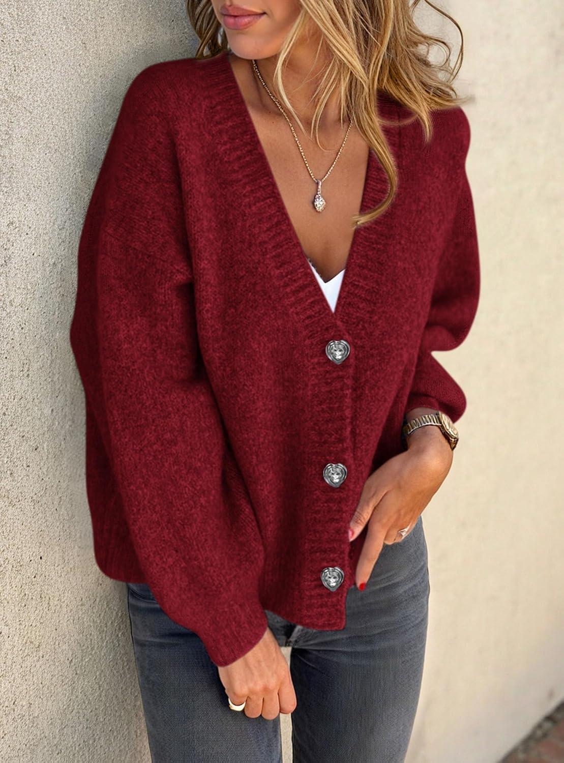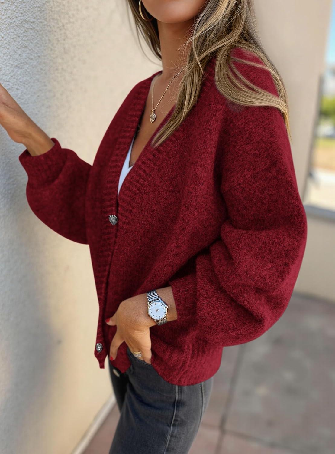 PRETTYGARDEN Cardigan Sweaters for Women Trendy Fall 2025 Long Sleeve Button Down Oversized Chunky Knit Sweater Outerwear(Wine Red)