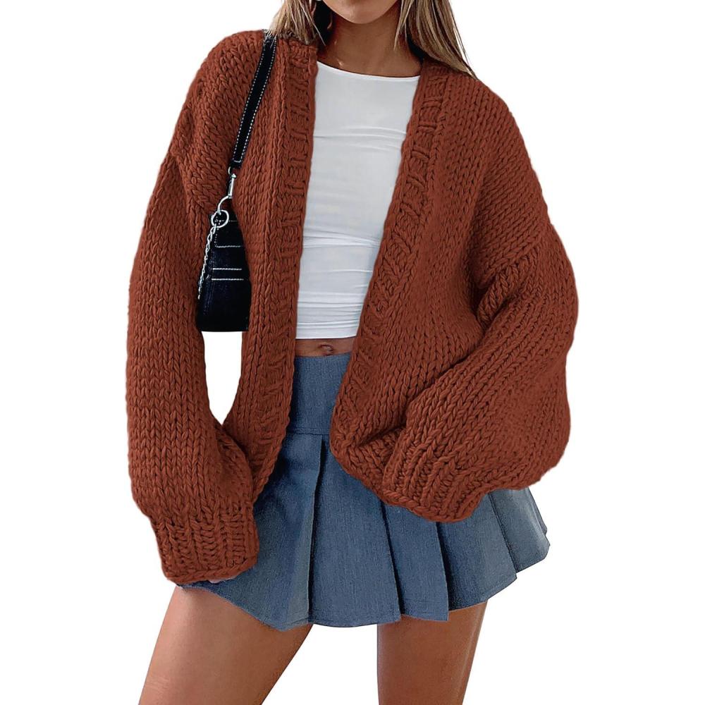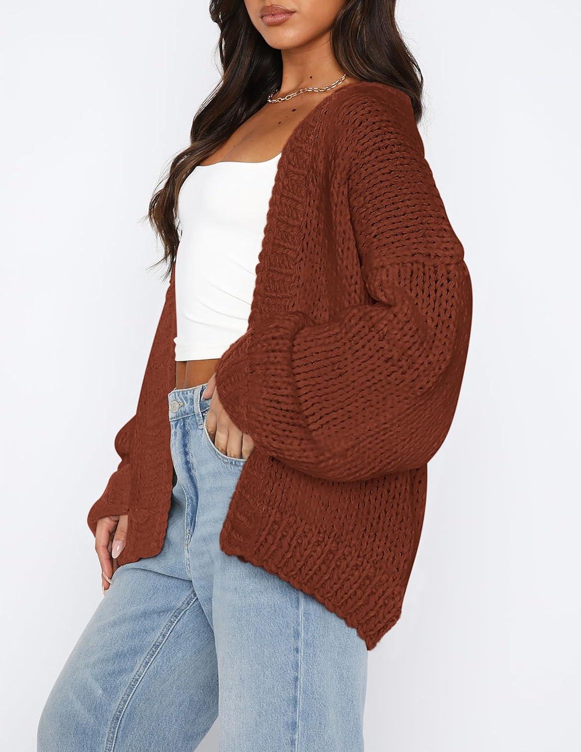 PRETTYGARDEN Cardigan Sweaters for Women Trendy Fall Fashion 2025 Long Sleeve Chunky Knit Cardigans Winter Clothing Outfits(Brown Red)