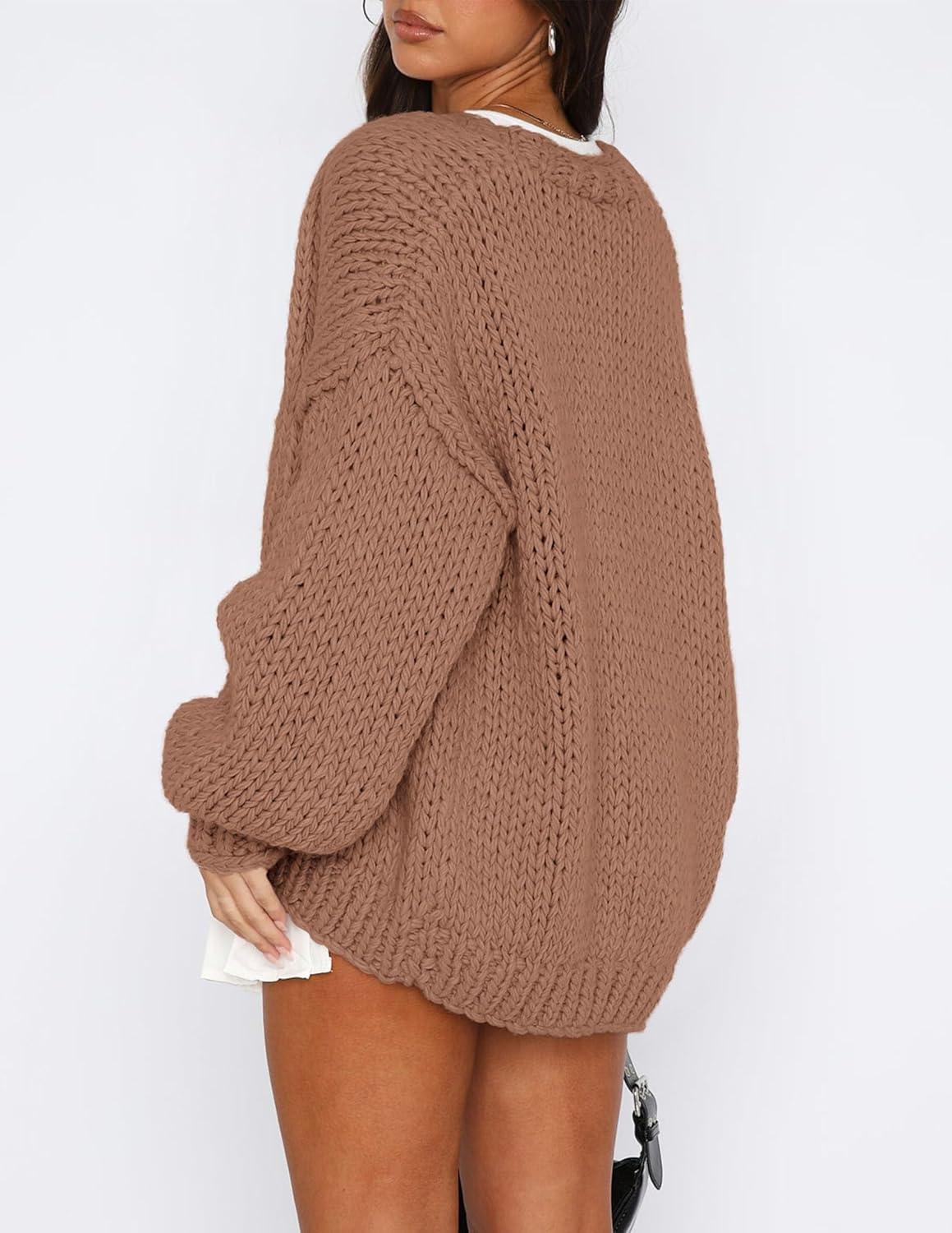 PRETTYGARDEN Cardigan Sweaters for Women Trendy Fall Fashion 2025 Long Sleeve Chunky Knit Cardigans Winter Clothing Outfits(Red Camel)