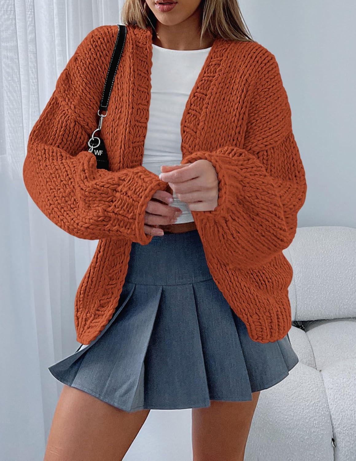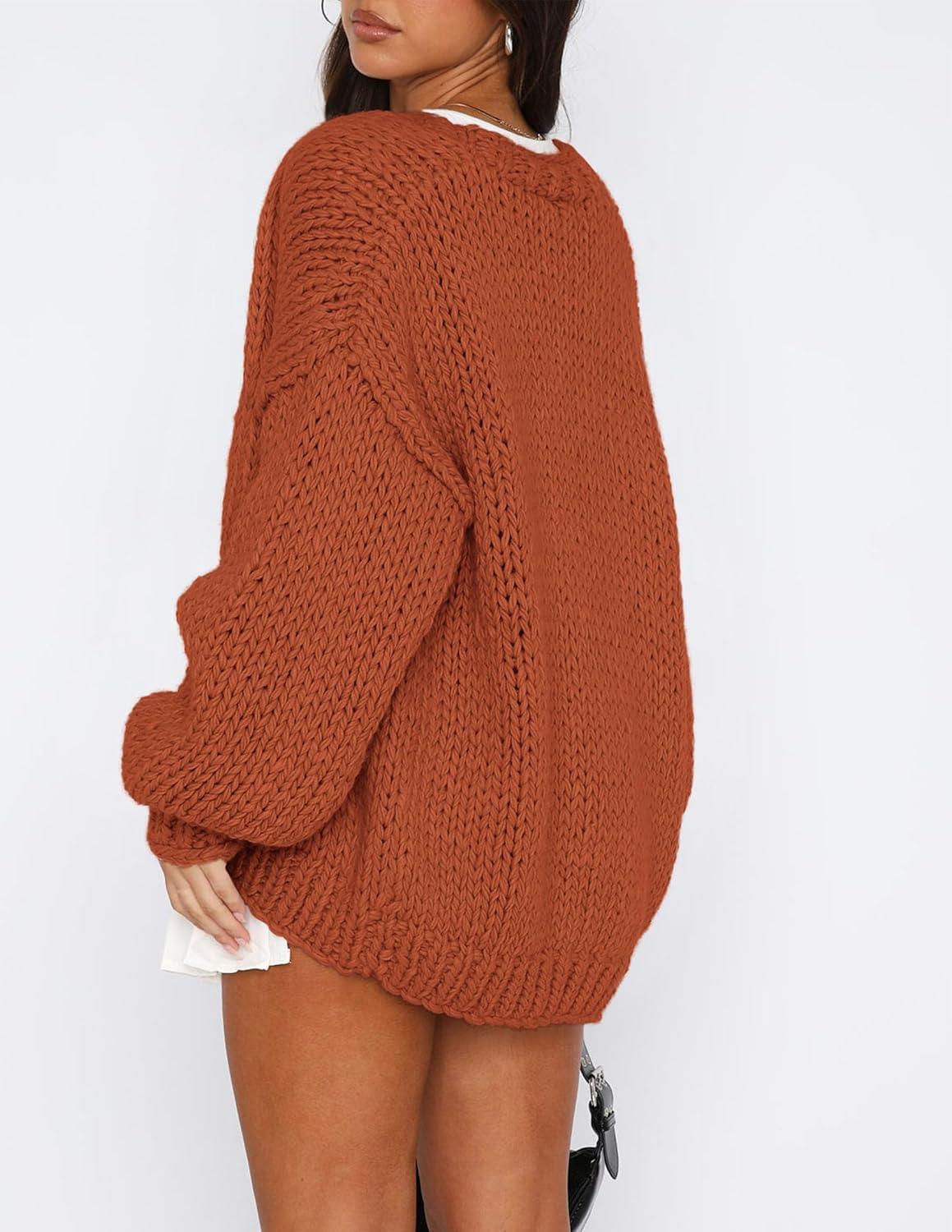PRETTYGARDEN Cardigan Sweaters for Women Trendy Fall Fashion 2025 Long Sleeve Chunky Knit Cardigans Winter Clothing Outfits(Rust Red)