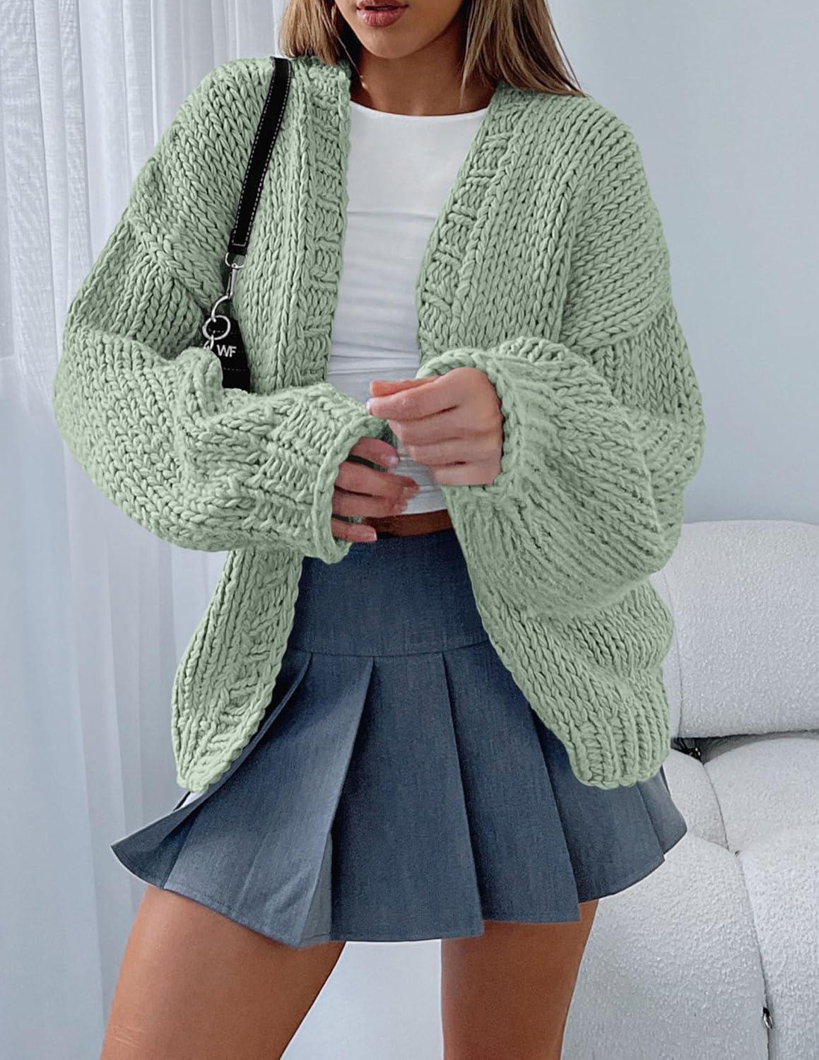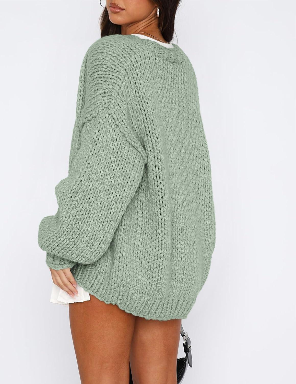 PRETTYGARDEN Cardigan Sweaters for Women Trendy Fall Fashion 2025 Long Sleeve Chunky Knit Cardigans Winter Clothing Outfits(Sage Green)