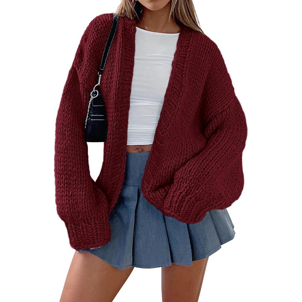 PRETTYGARDEN Cardigan Sweaters for Women Trendy Fall Fashion 2025 Long Sleeve Chunky Knit Cardigans Winter Clothing Outfits(Wine Red)