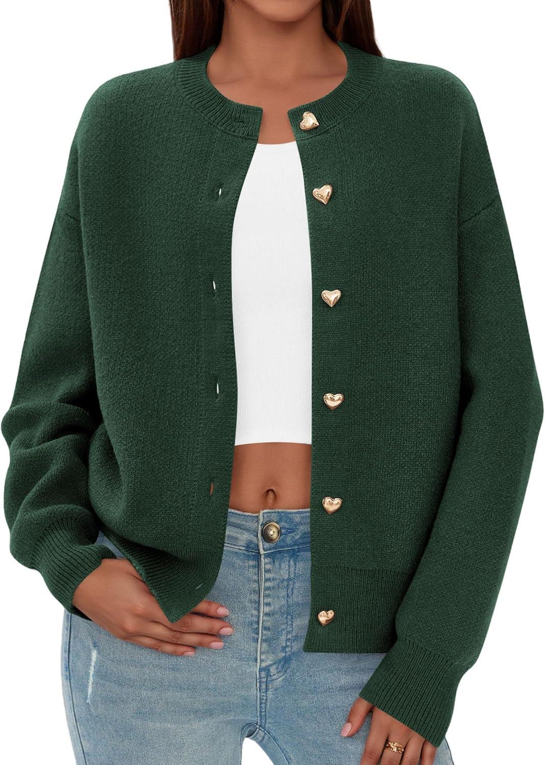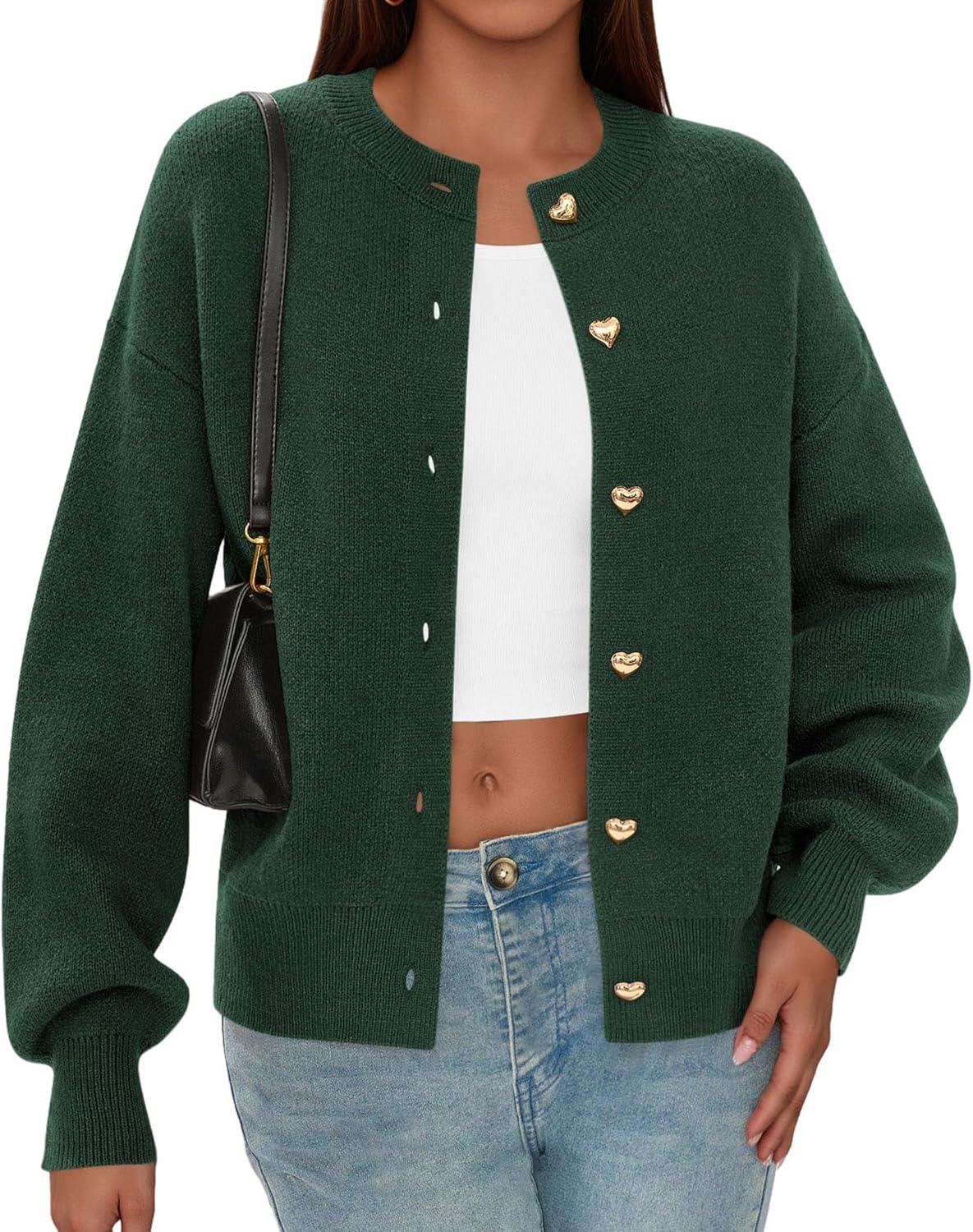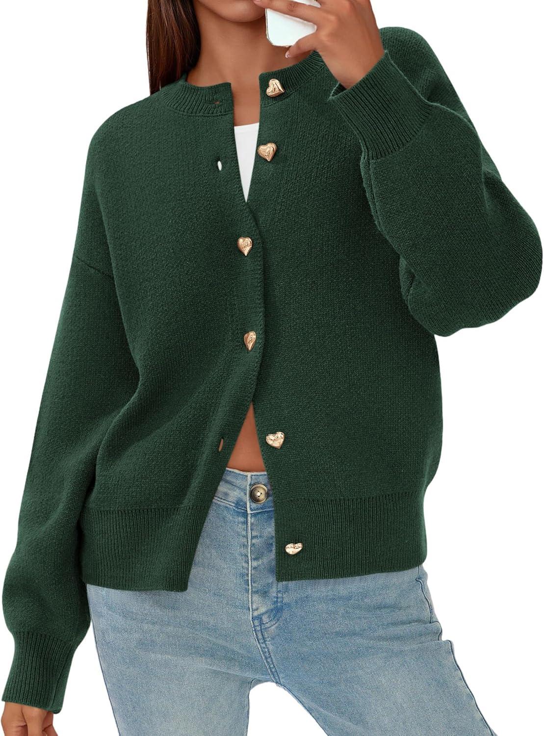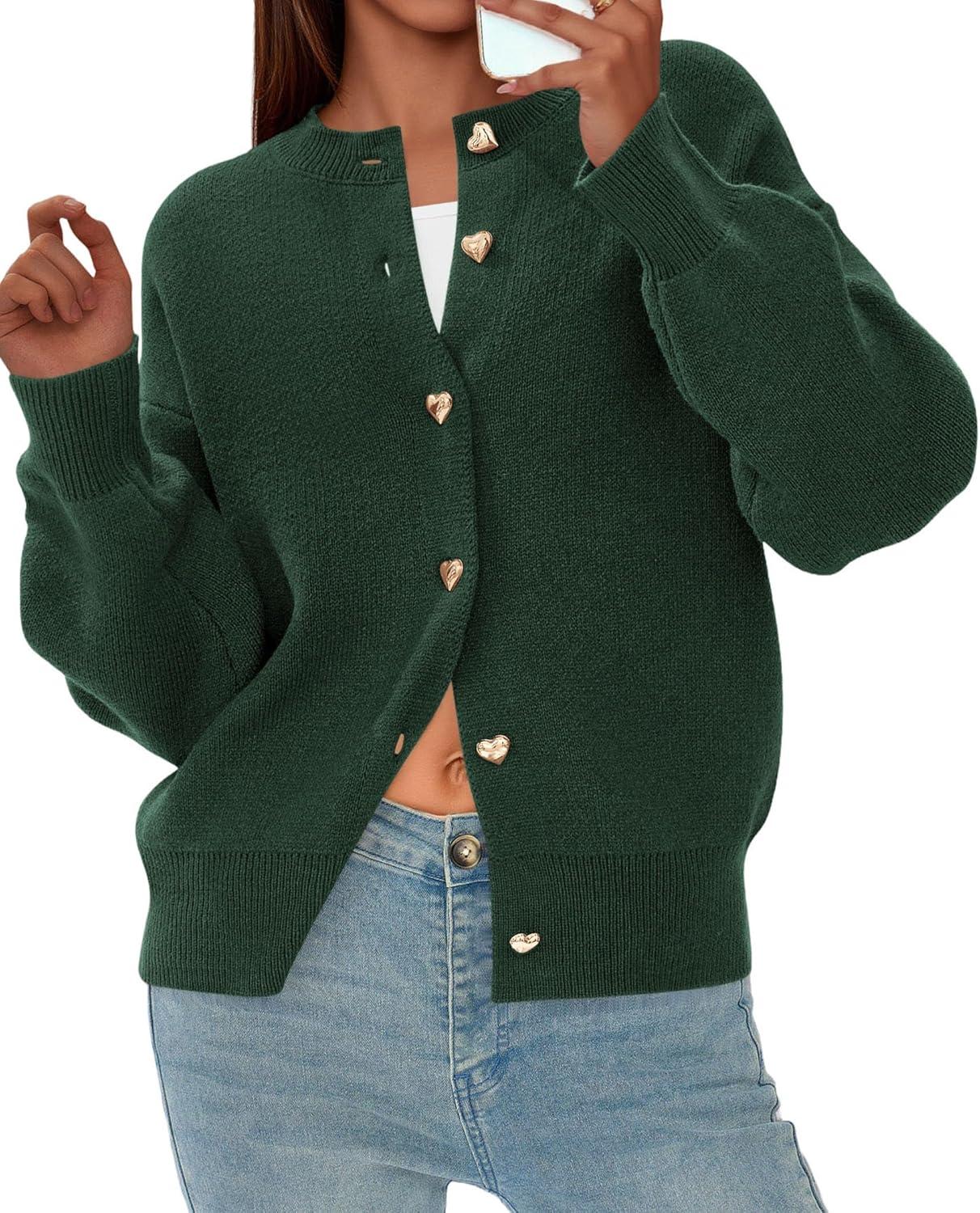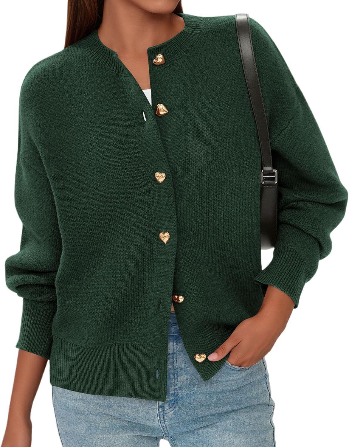 PRETTYGARDEN Cardigan Sweaters for Women Trendy Long Sleeve Open Front Button Down Jacket 2025 Fall Clothes Winter Coats(Dark Green)