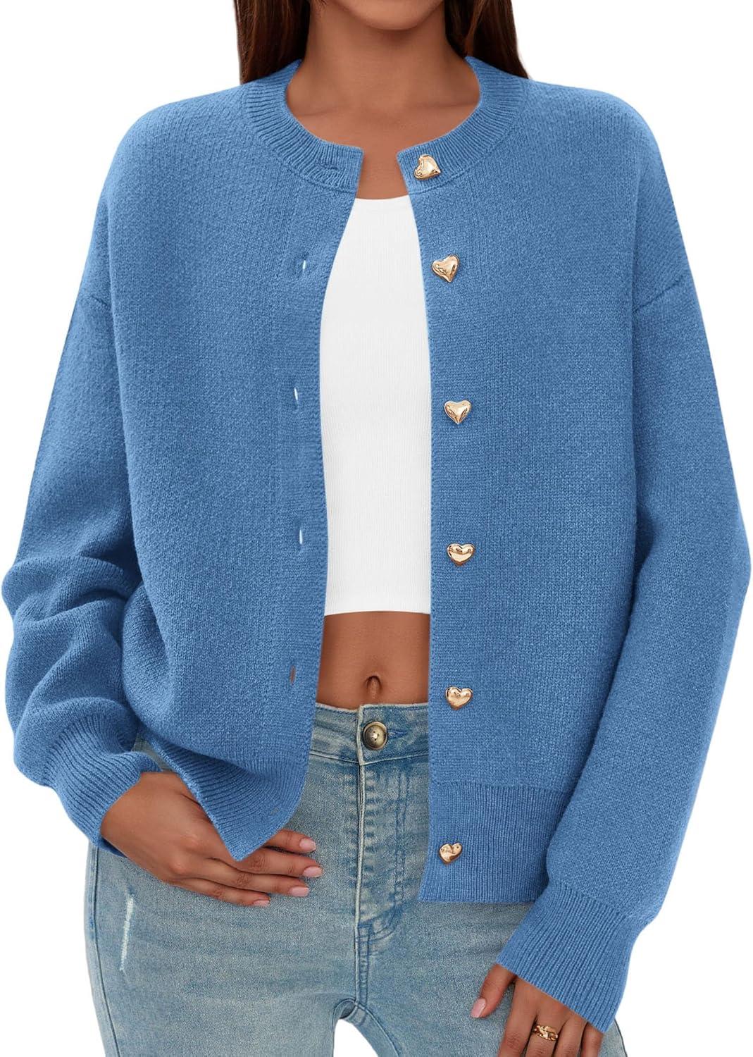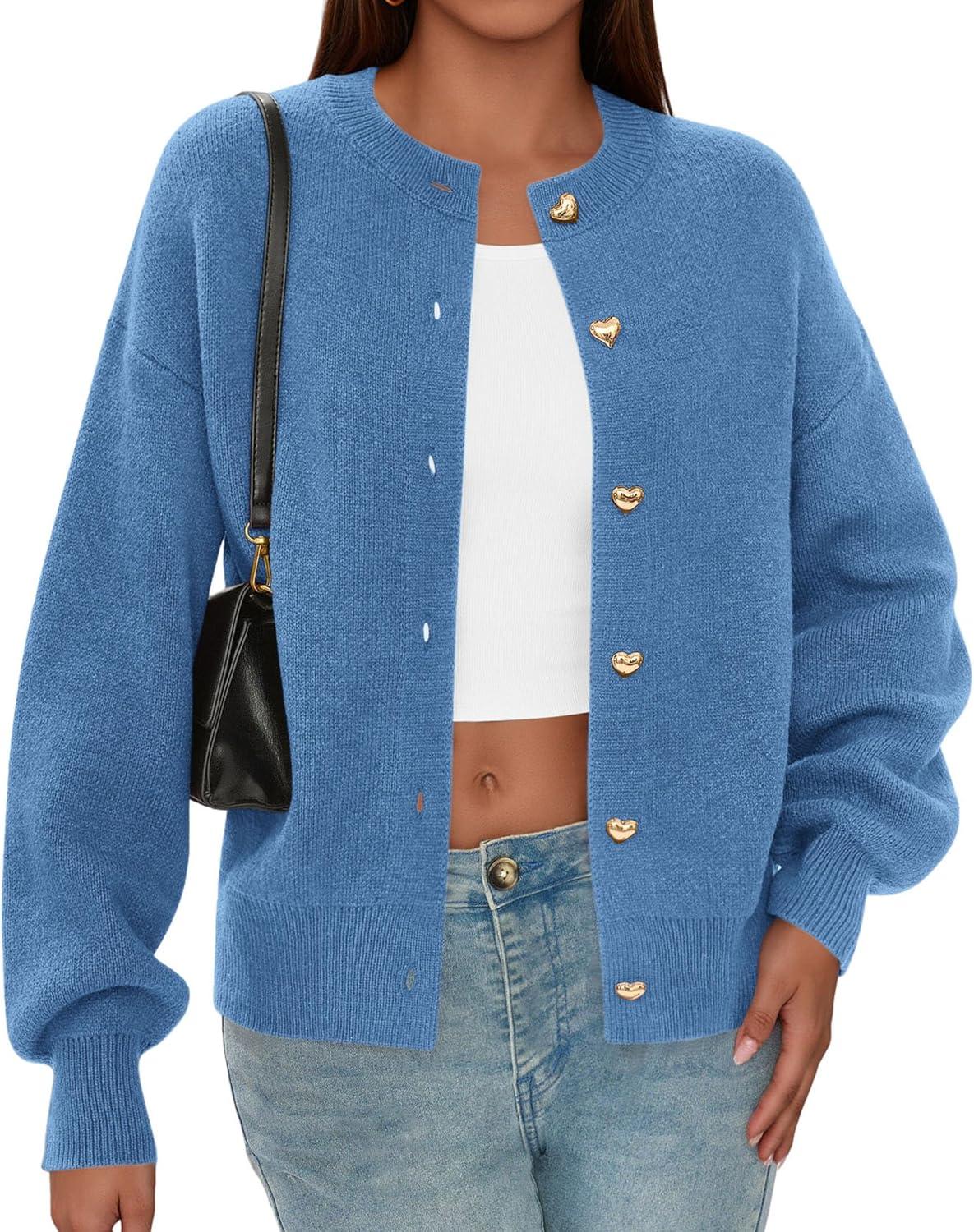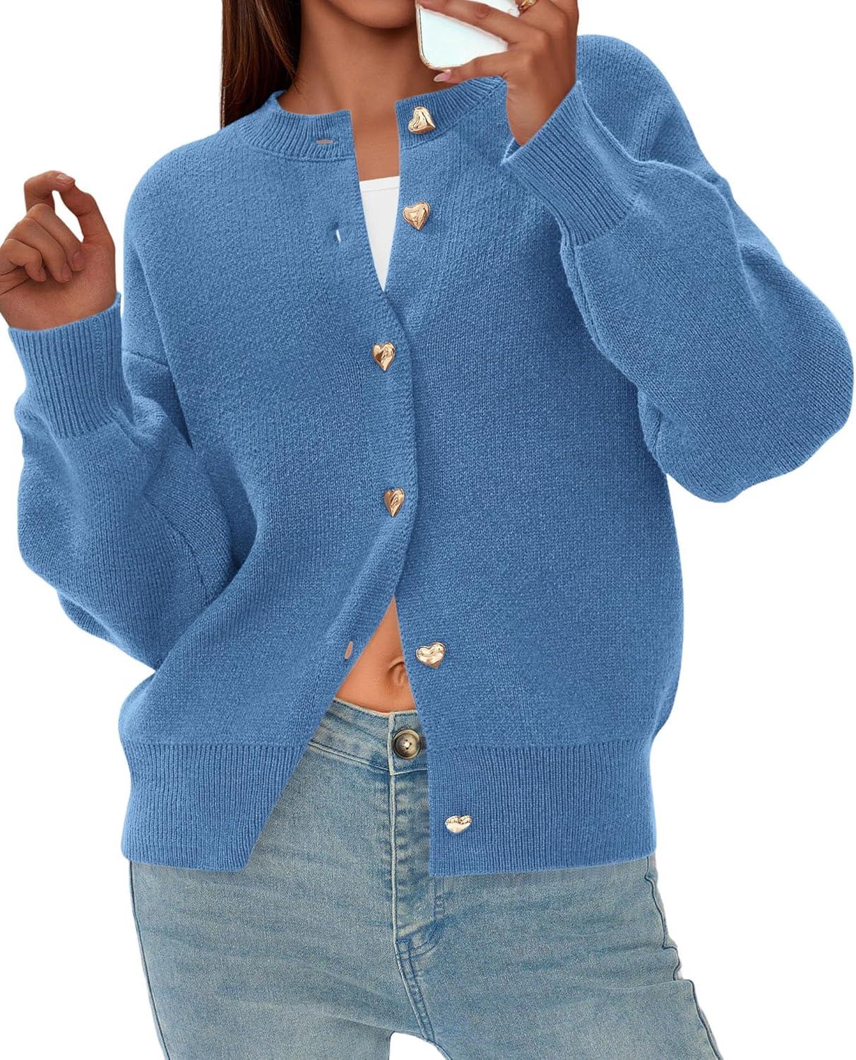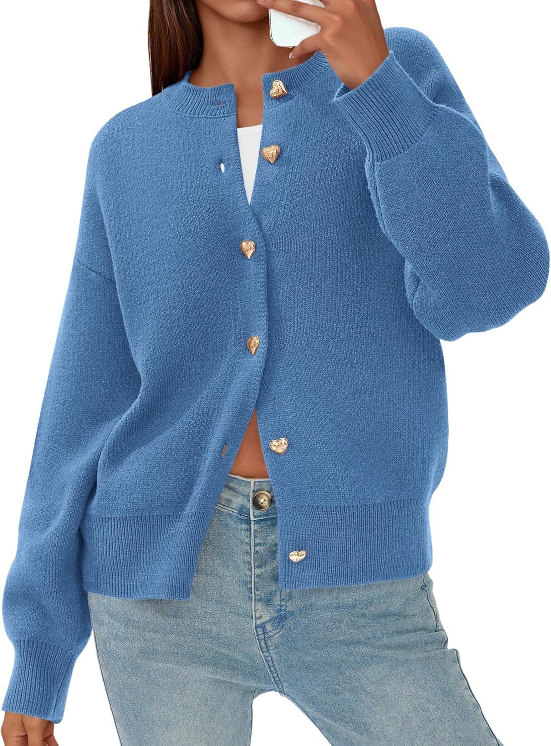 PRETTYGARDEN Cardigan Sweaters for Women Trendy Long Sleeve Open Front Button Down Jacket 2025 Fall Clothes Winter Coats(Grey Blue)