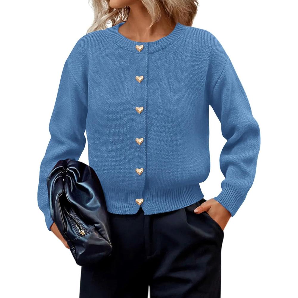 imagePRETTYGARDEN Cardigan Sweaters for Women Trendy Long Sleeve Open Front Button Down Jacket 2025 Fall Clothes Winter CoatsGrey Blue