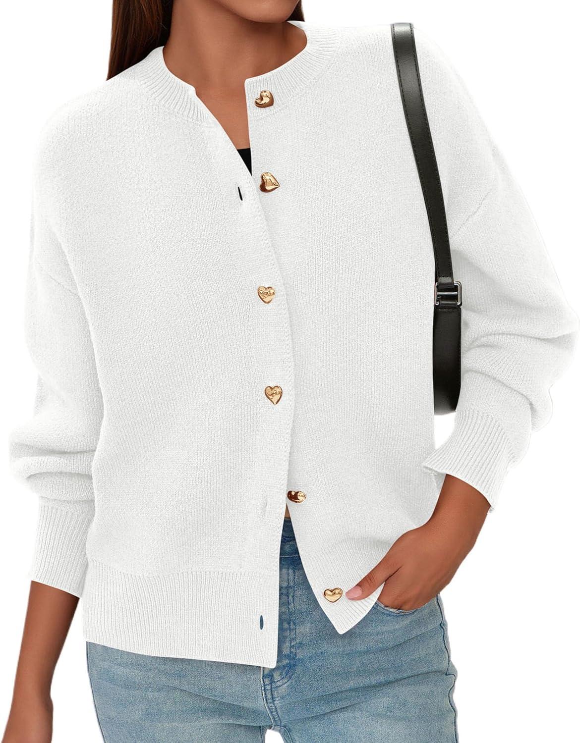 PRETTYGARDEN Cardigan Sweaters for Women Trendy Long Sleeve Open Front Button Down Jacket 2025 Fall Clothes Winter Coats(White)