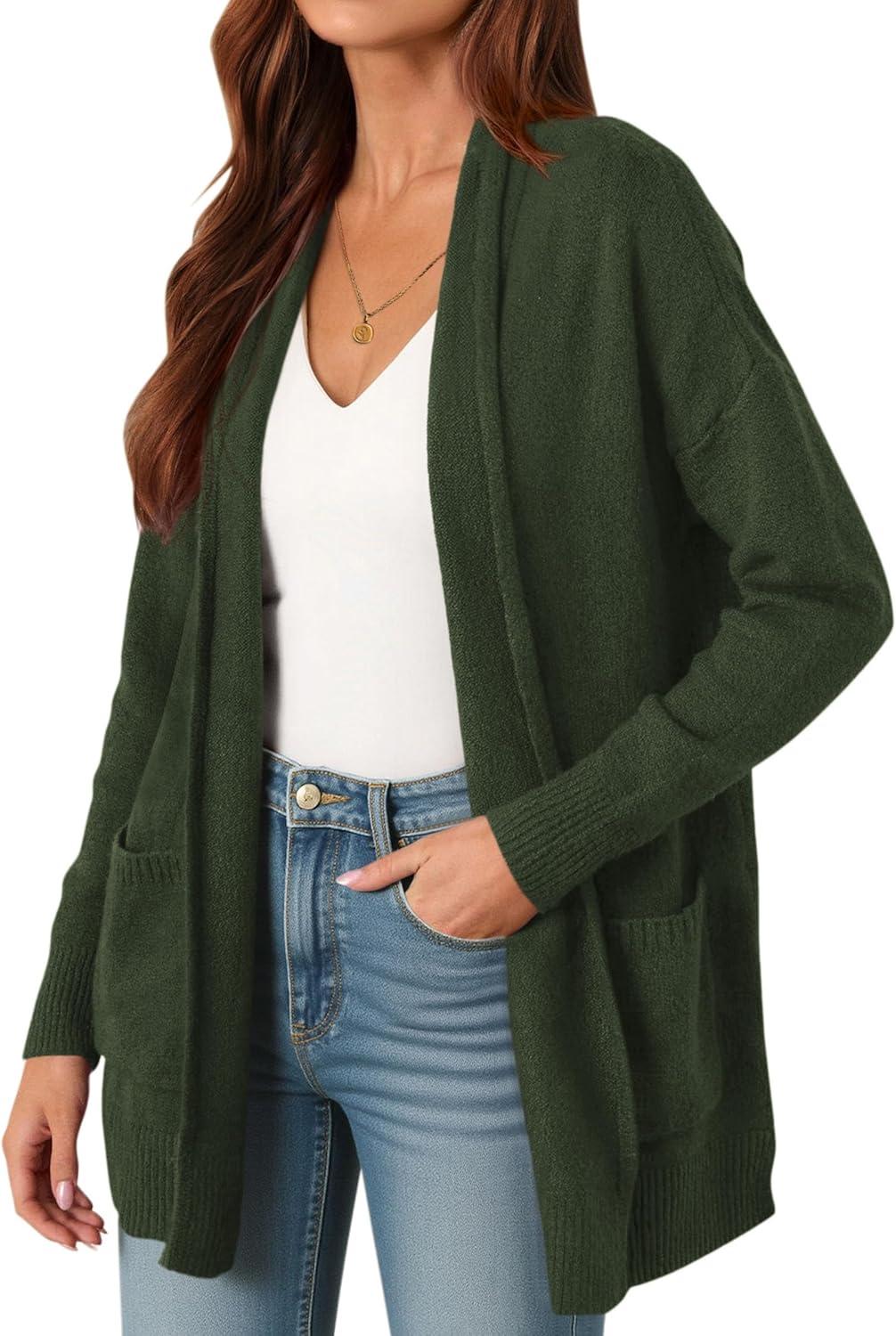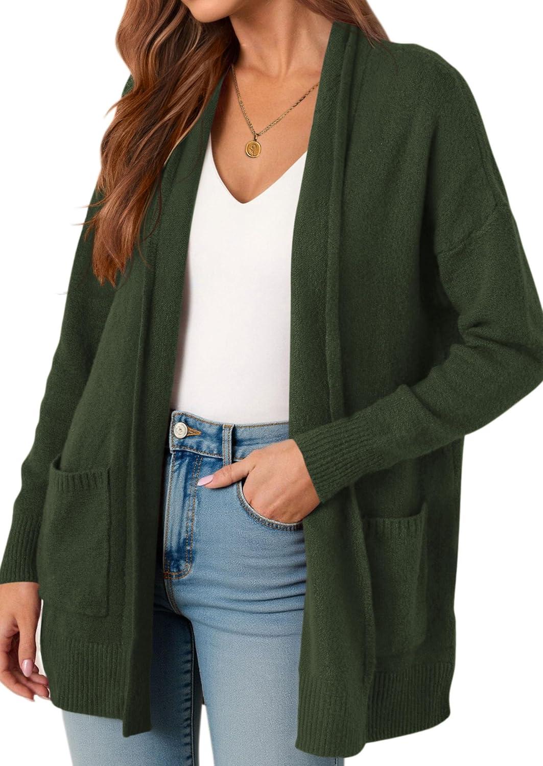 PRETTYGARDEN Cardigan Sweaters for Women Winter Fall Clothes 2025 Cozy Knit Coats Open Front Long Cardigans with Pockets(Army Green)