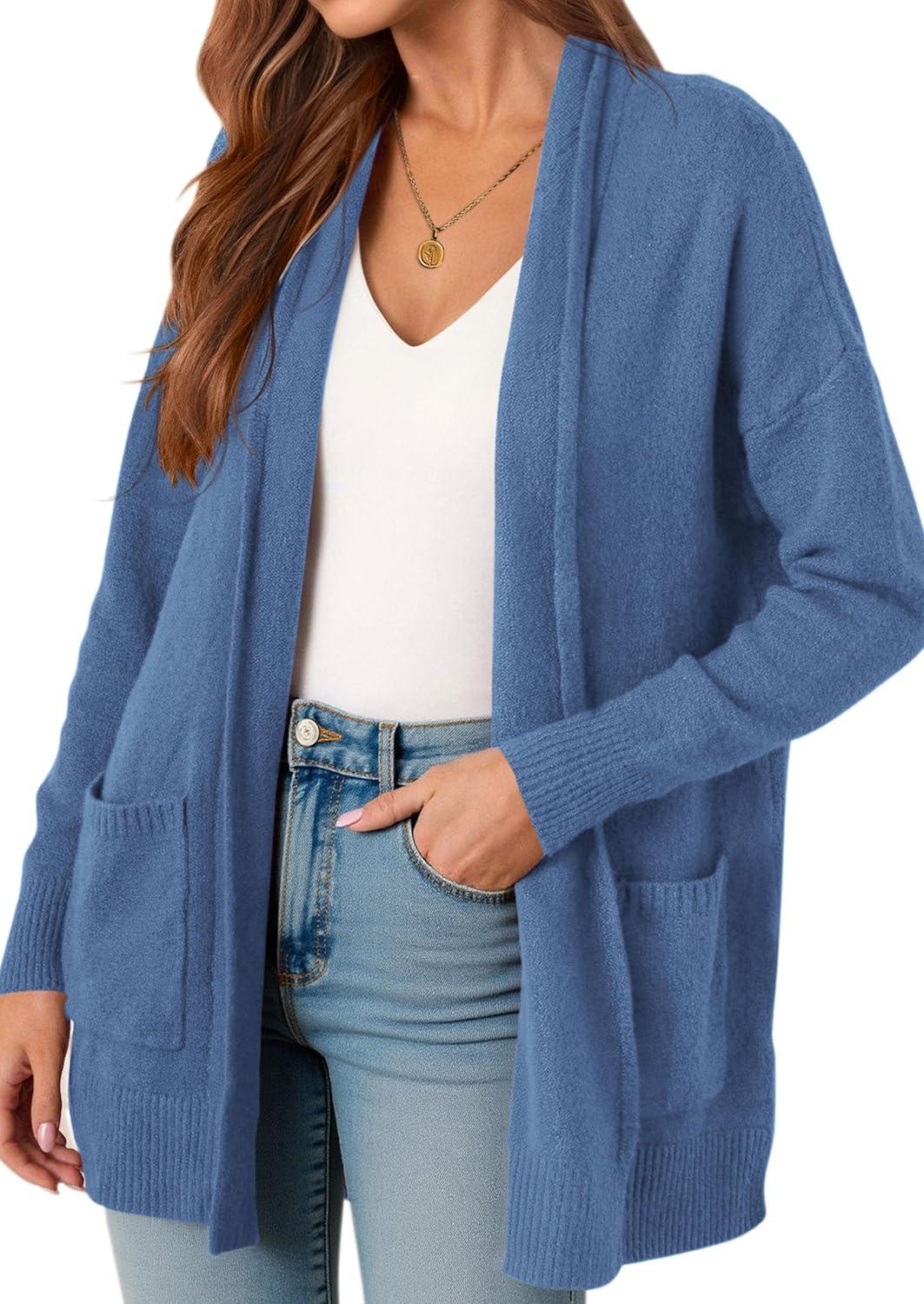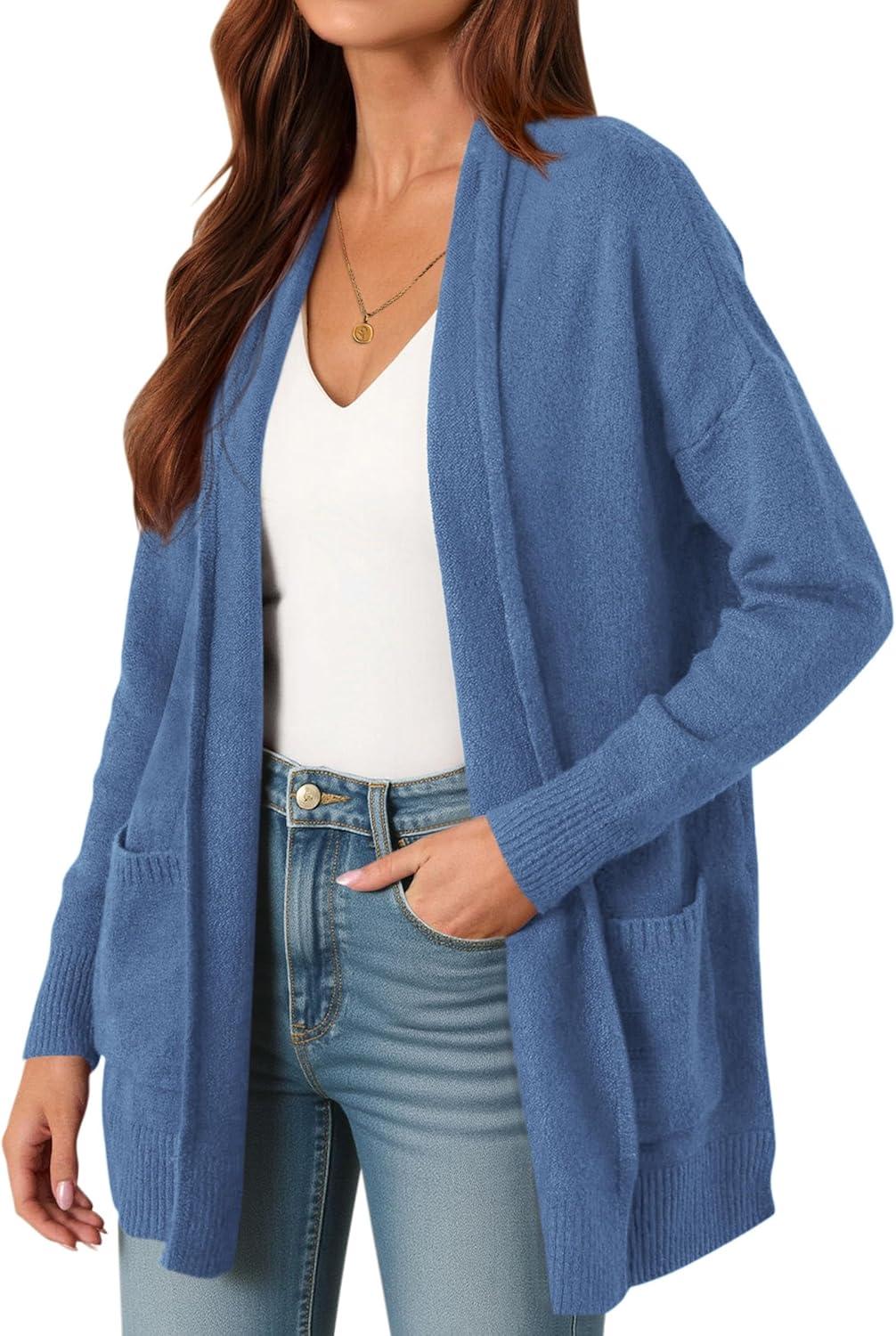 PRETTYGARDEN Cardigan Sweaters for Women Winter Fall Clothes 2025 Cozy Knit Coats Open Front Long Cardigans with Pockets(Blue)